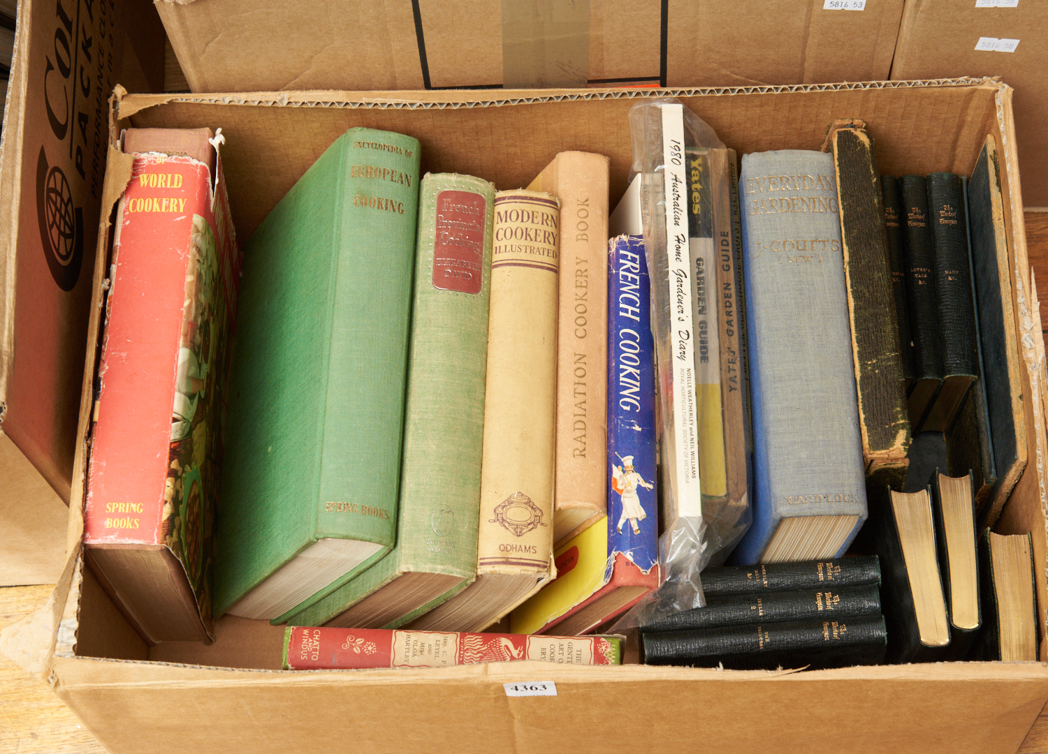 THREE BOXES OF BOOKS, INCLUDING COOK BOOKS AND GARDENING