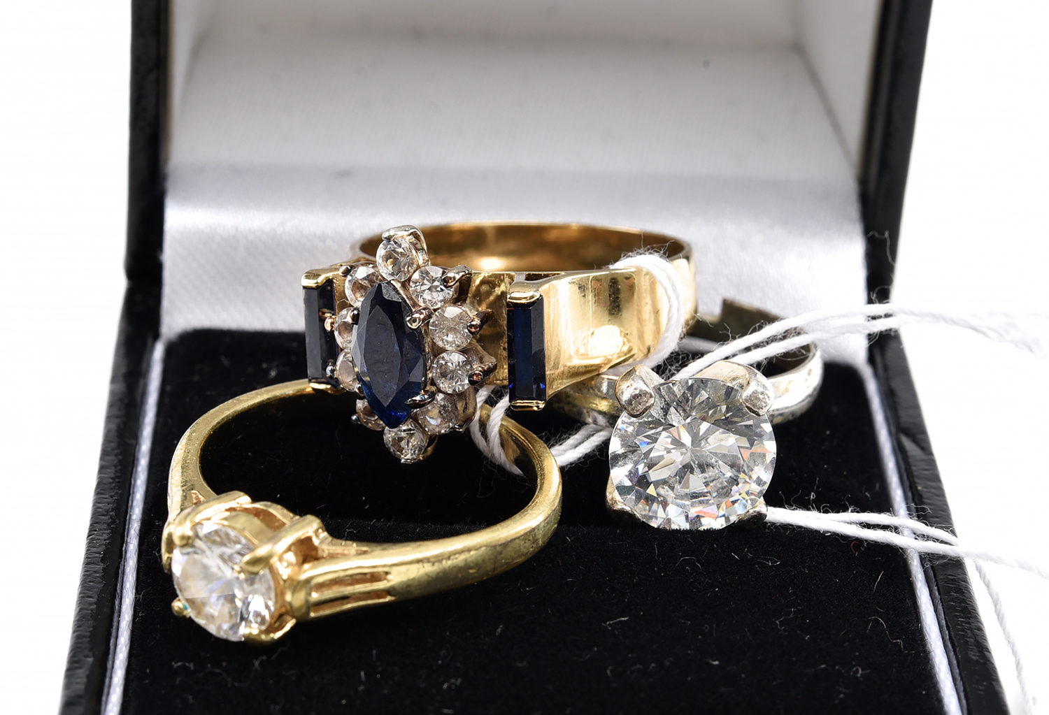 A COLLECTION OF THREE PASTE SET RINGS, INCLUDING ONE RING STAMPED 9CT GOLD