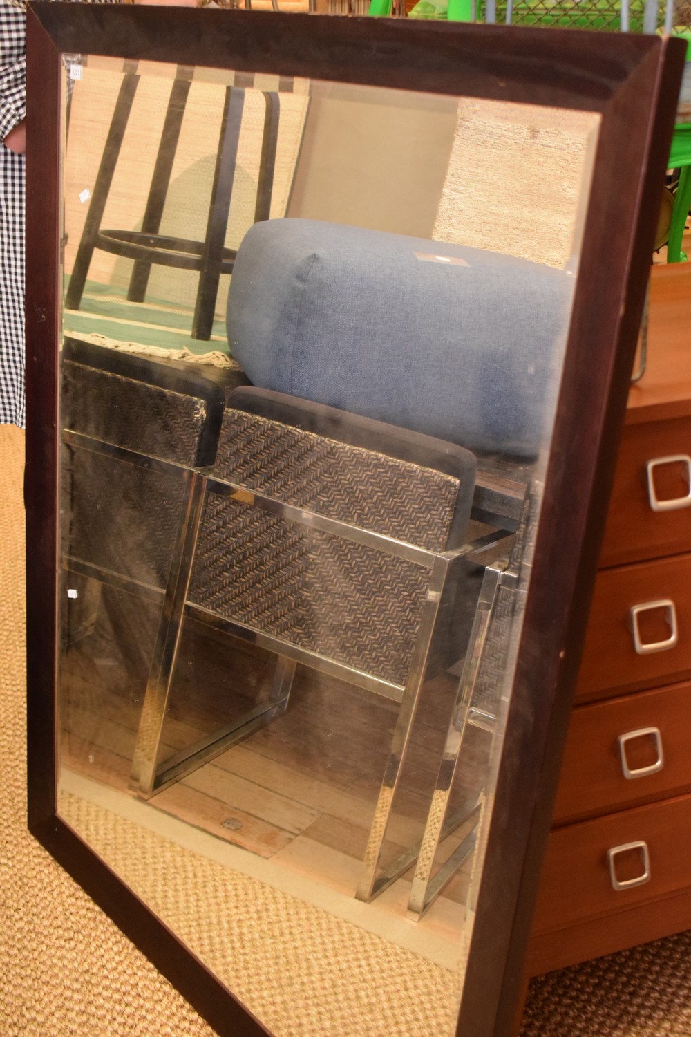 A LARGE TIMBER FRAMED MIRROR (134H x 103W CM)
