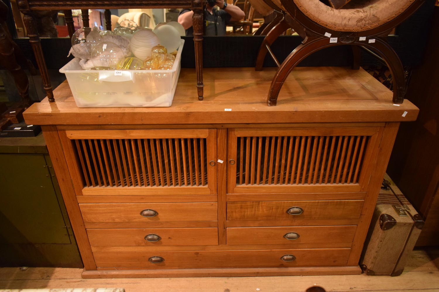 A SUBSTANTIAL FIVE DRAWER, TWO DOOR SIDEBOARD (95H x 150W x 65D CM) (PLEASE NOTE THIS ITEM MUST BE REMOVED BY CLIENTS OR CARRIERS AT THE CUSTOMERS EXPENSE)