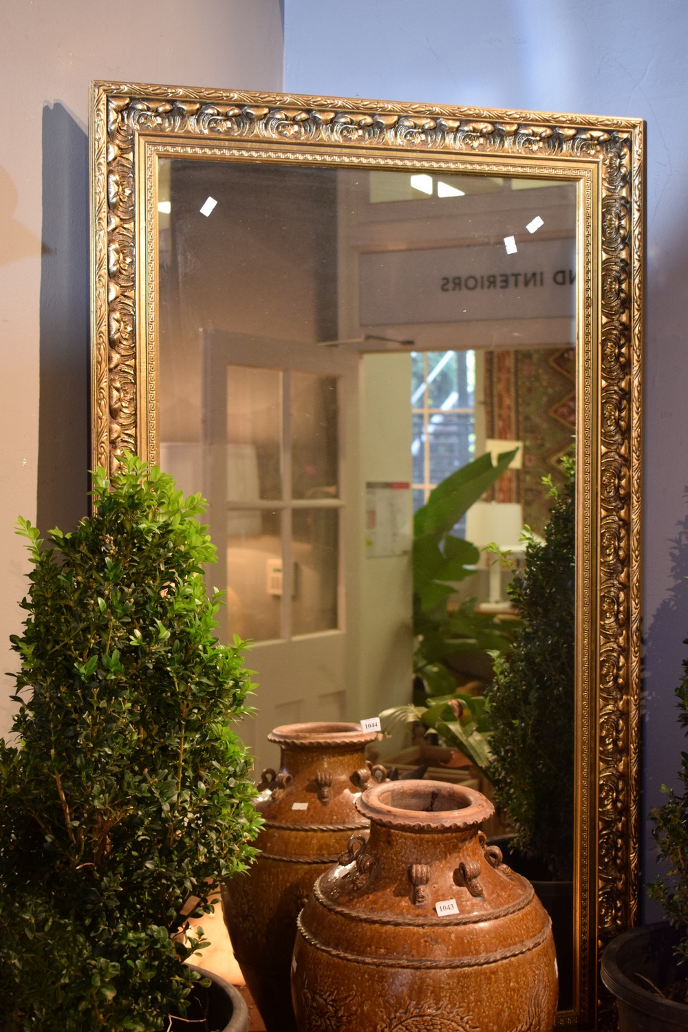 A LARGE GILT EFFECT MIRROR (126H x 77W CM)