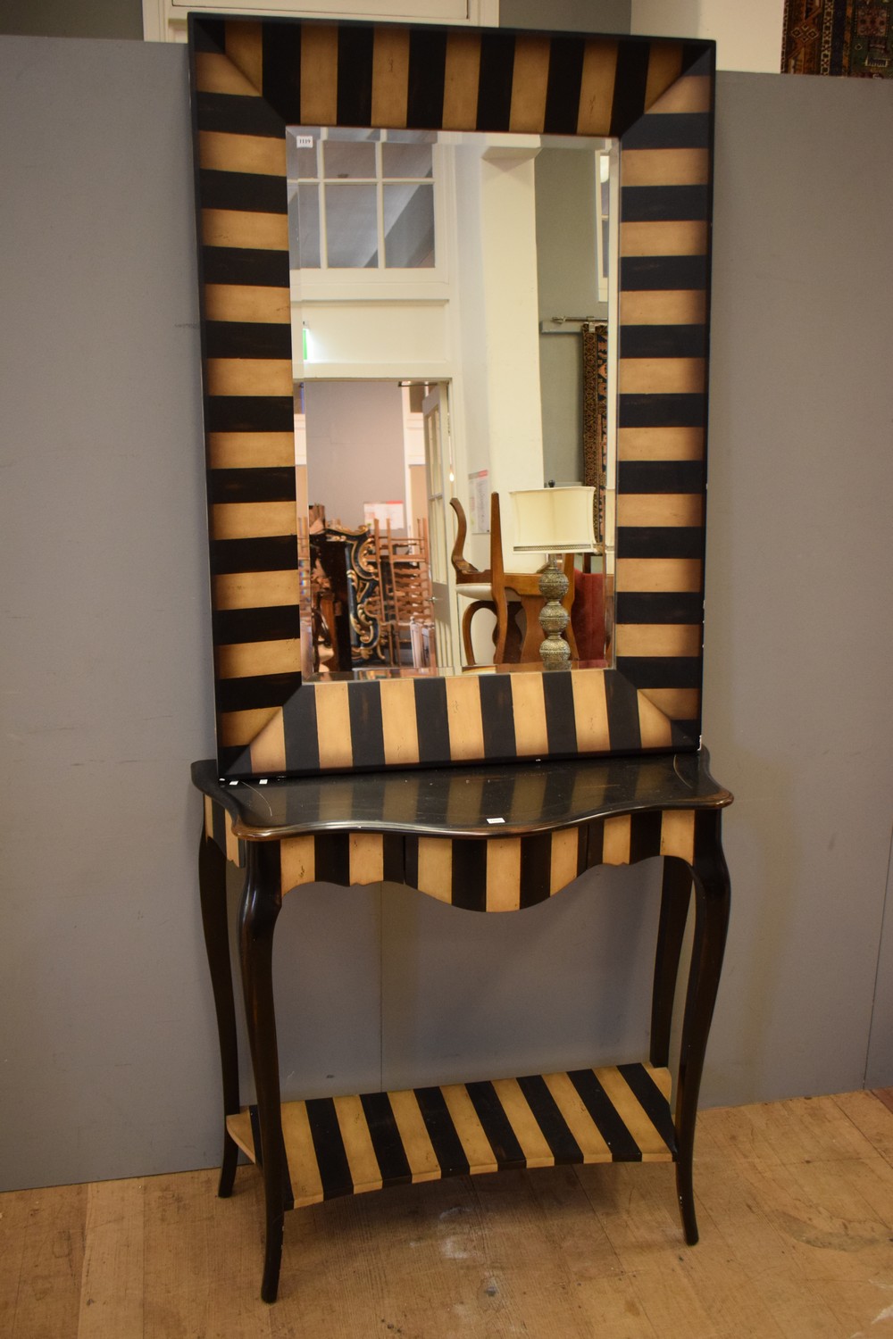 A SERPENTINE FRONTED CONSOLE WITH MIRROR BY ATELIER DELA MADELEINE (124H x 89W CM) (PLEASE NOTE THIS ITEM MUST BE REMOVED BY CLIENTS OR CARRIERS AT THE CUSTOMERS EXPENSE)