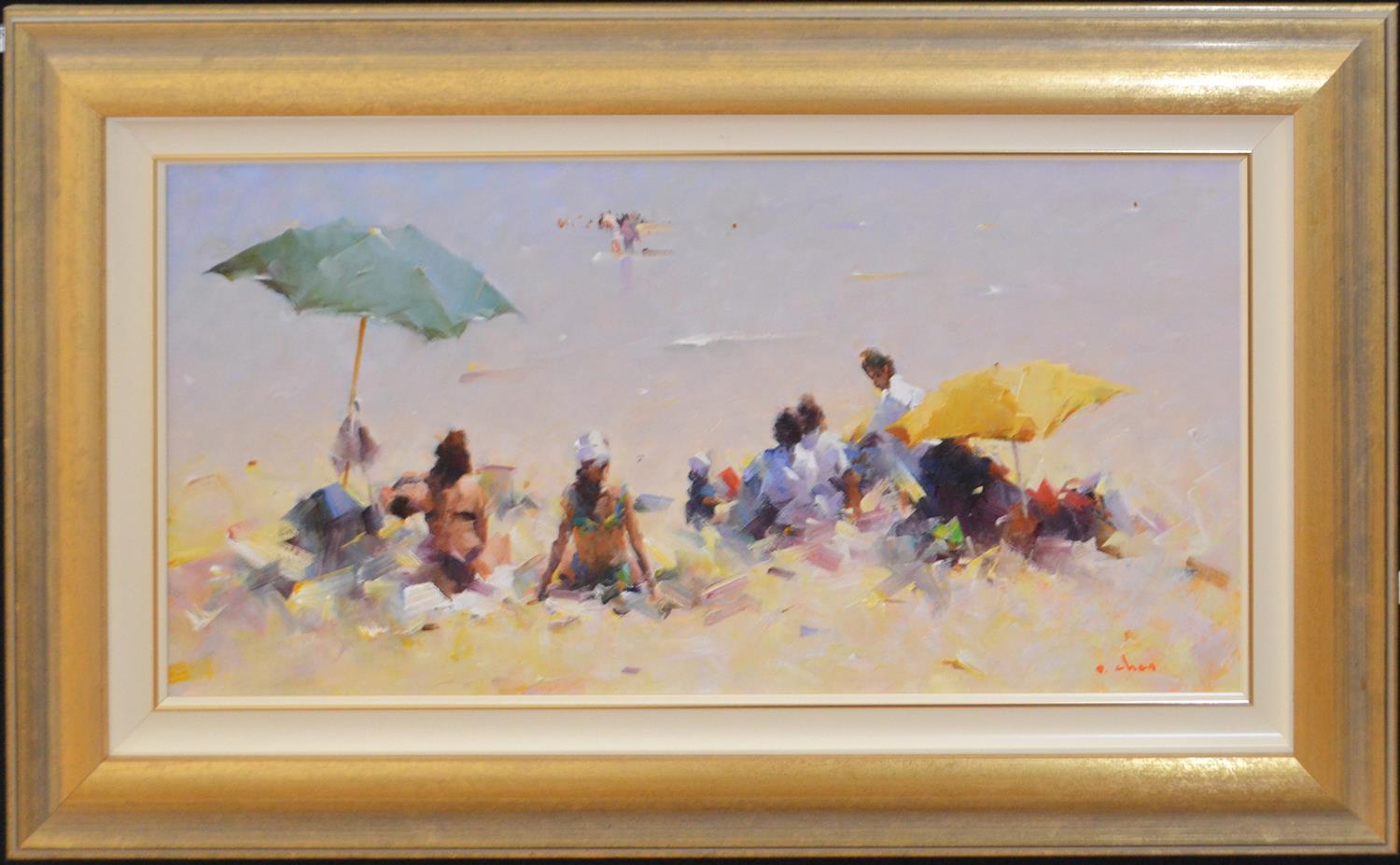 DAVID CHEN, WATER'S EDGE, OIL ON BOARD, 37 X 75CM FRAME SIZE: 60 X 98CM, CONDITION: VERY GOOD, NO FAULTS