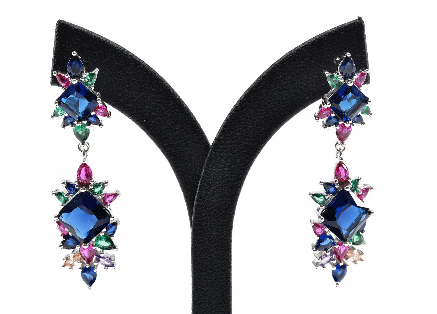A PAIR OF COLOURED PASTE SET DROP EARRINGS