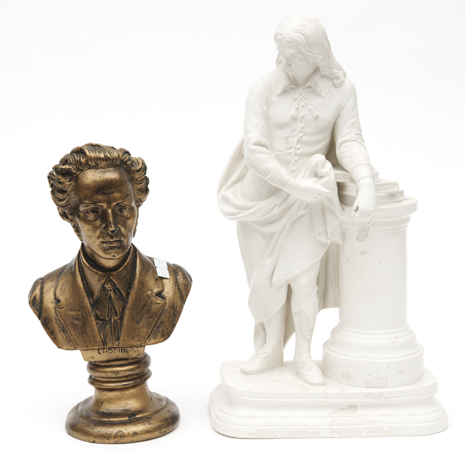 TWO CLASSICAL STYLE PAINTED COMPOSITE FIGURES TALLEST 35CM