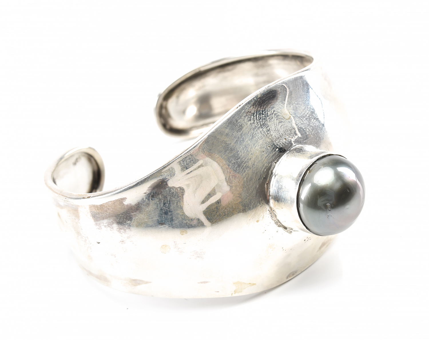 A TAHITIAN PEARL CUFF BANGLE IN STERLING SILVER