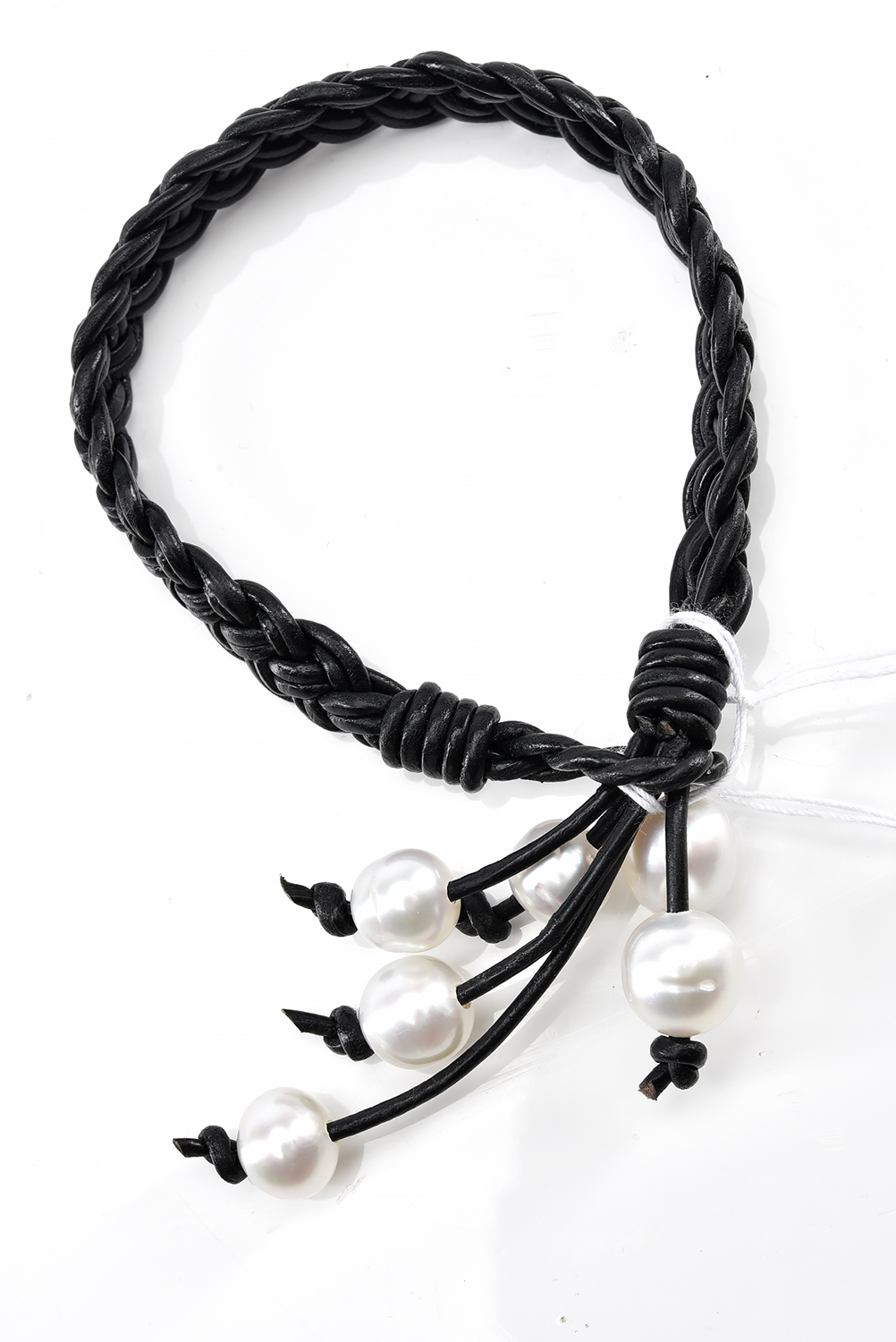 A BLACK LEATHER SOUTH SEA PEARL BRACELET