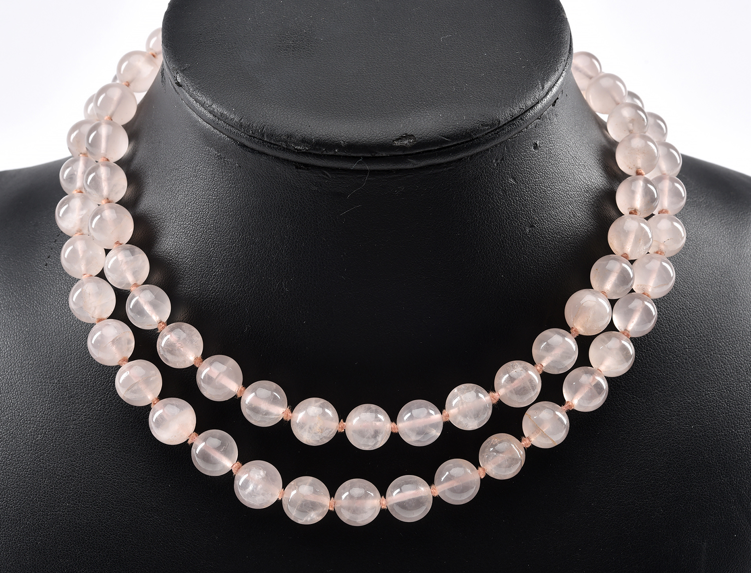 A STRAND OF ROSE QUARTZ BEADS, 820MM.