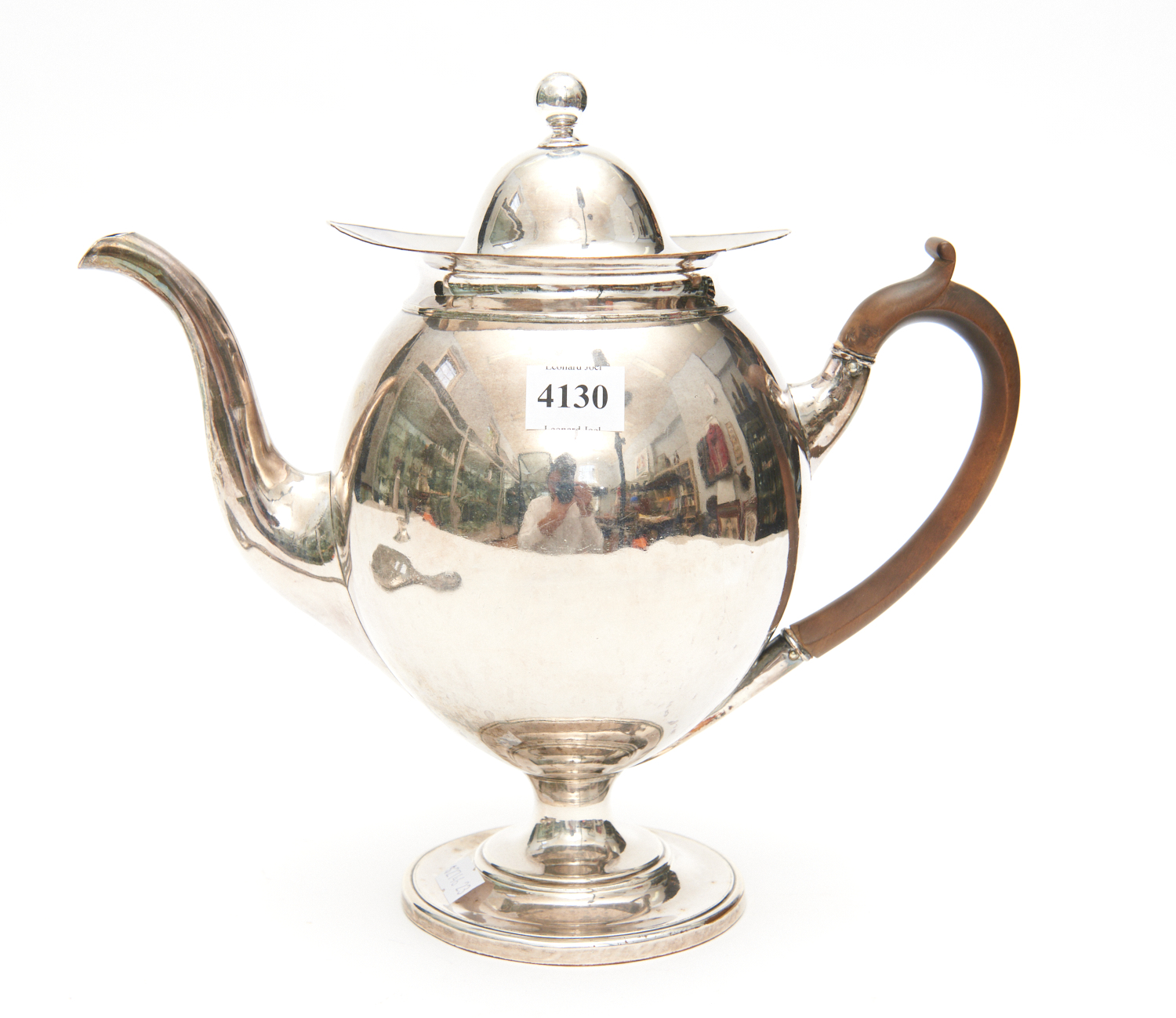 A SHEFFIELD PLATE TEAPOT, WITH A FRUITWOOD HANDLE