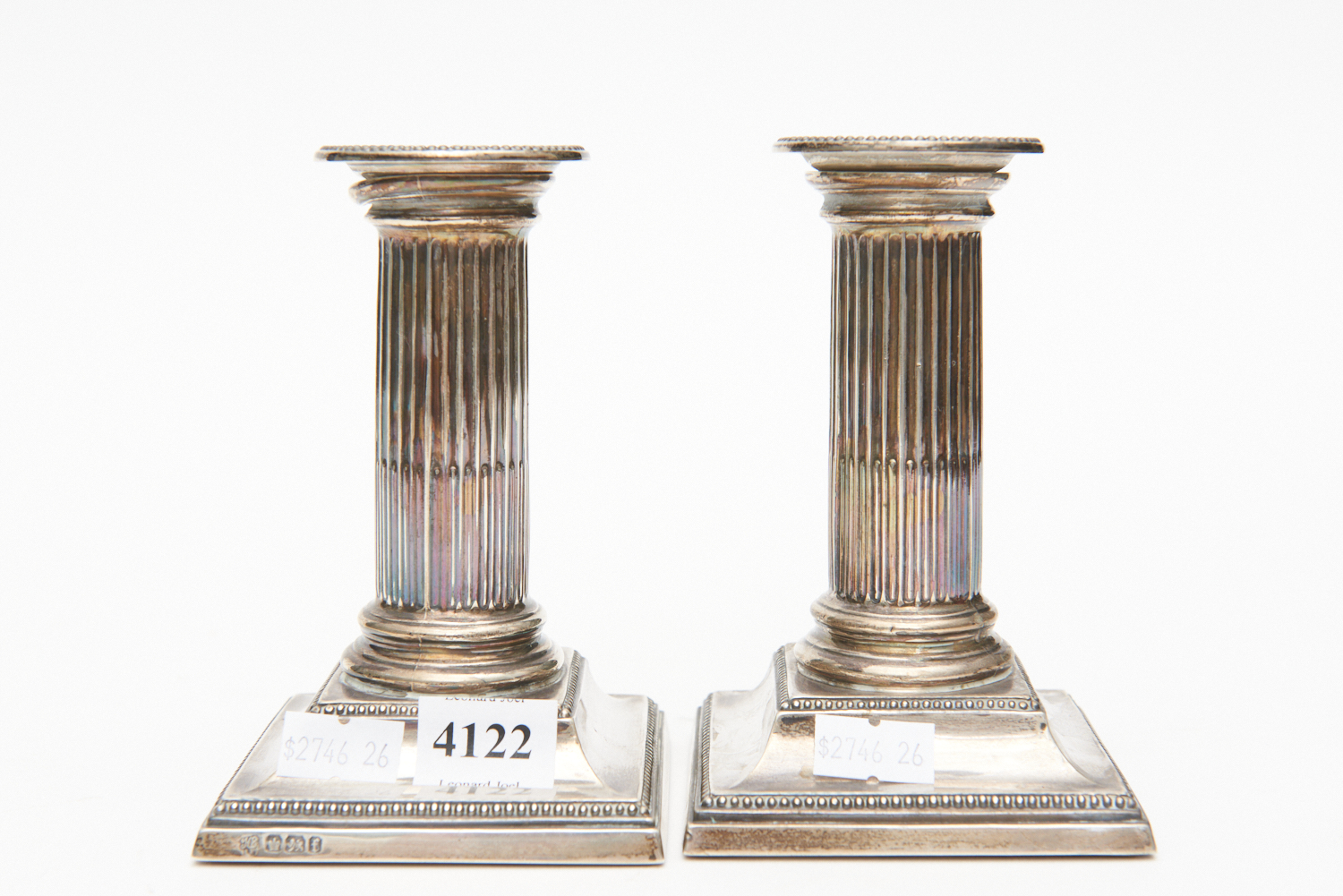 A PAIR OF STERLING SILVER FLUTED COLUMNAR CANDLESTICKS