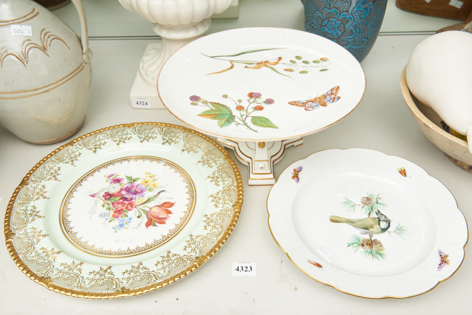 THREE PIECES OF PORCELAIN, INCLUDING A WEDGWOOD COMPORT, A MEISSEN PLATE AND A PARAGON CABINET PLATE