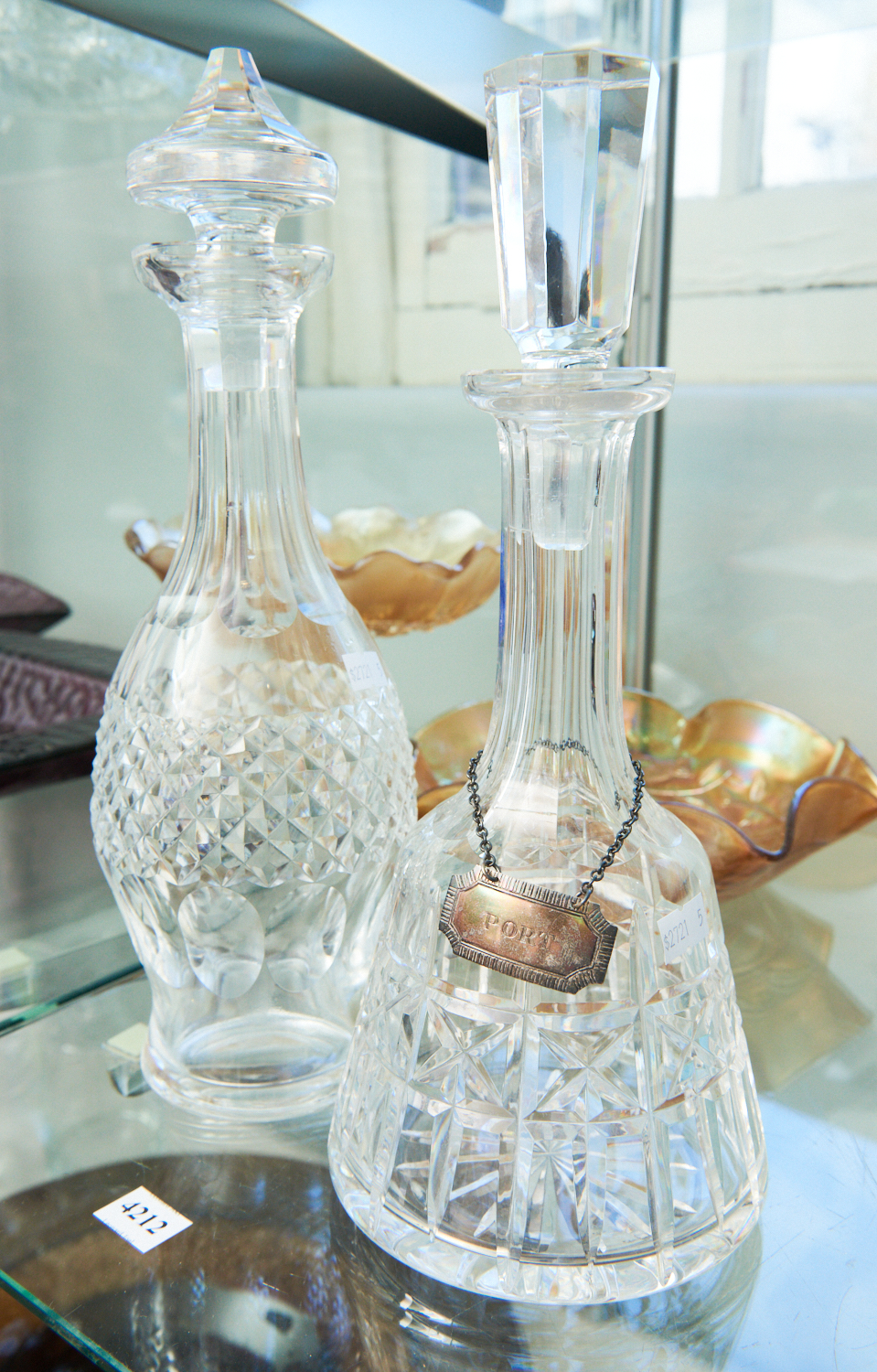 TWO WATERFORD CRYSTAL DECANTERS, ONE WITH A STERLING SILVER DECANTER LABEL