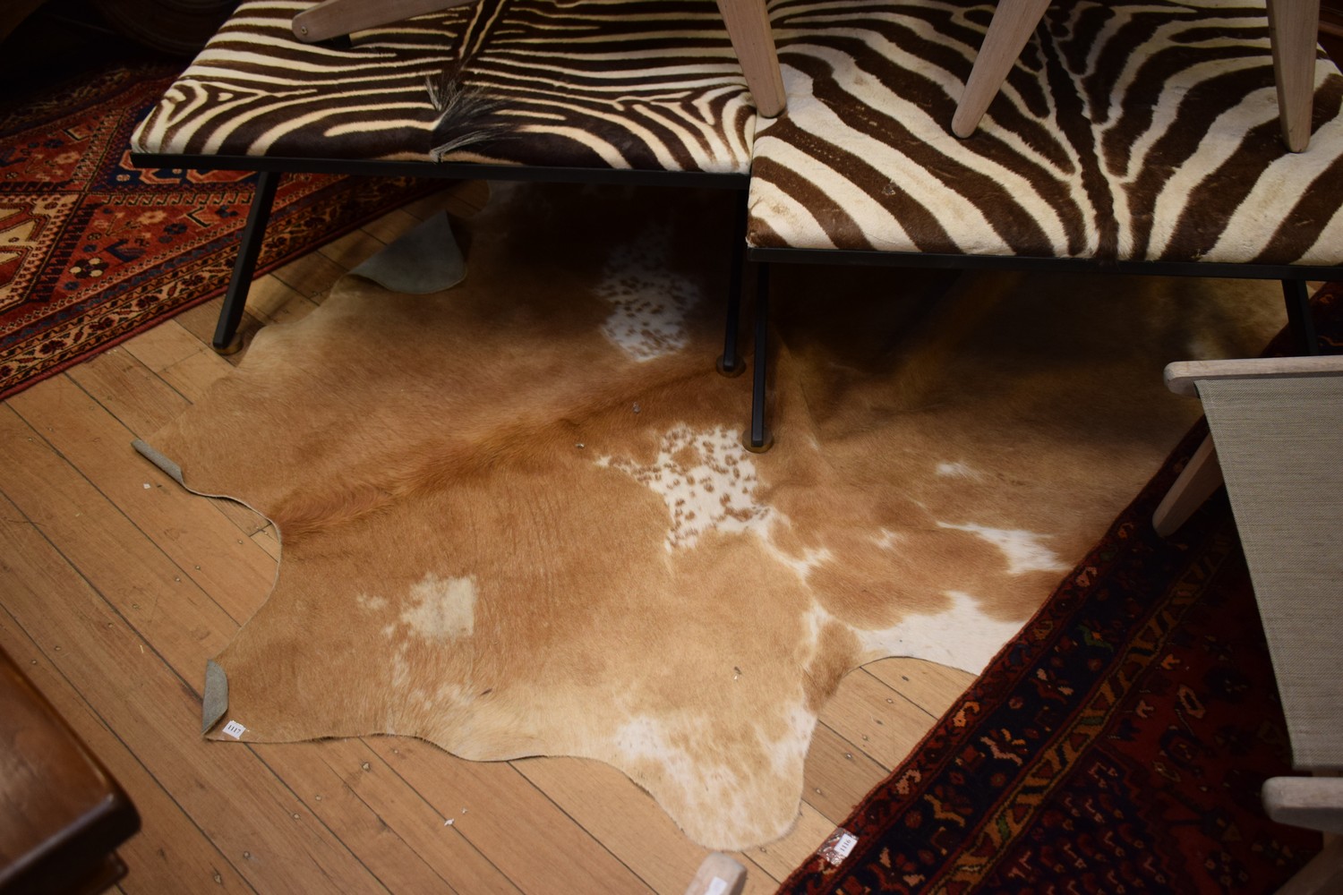 A LARGE COW HIDE IN CARAMEL TONES