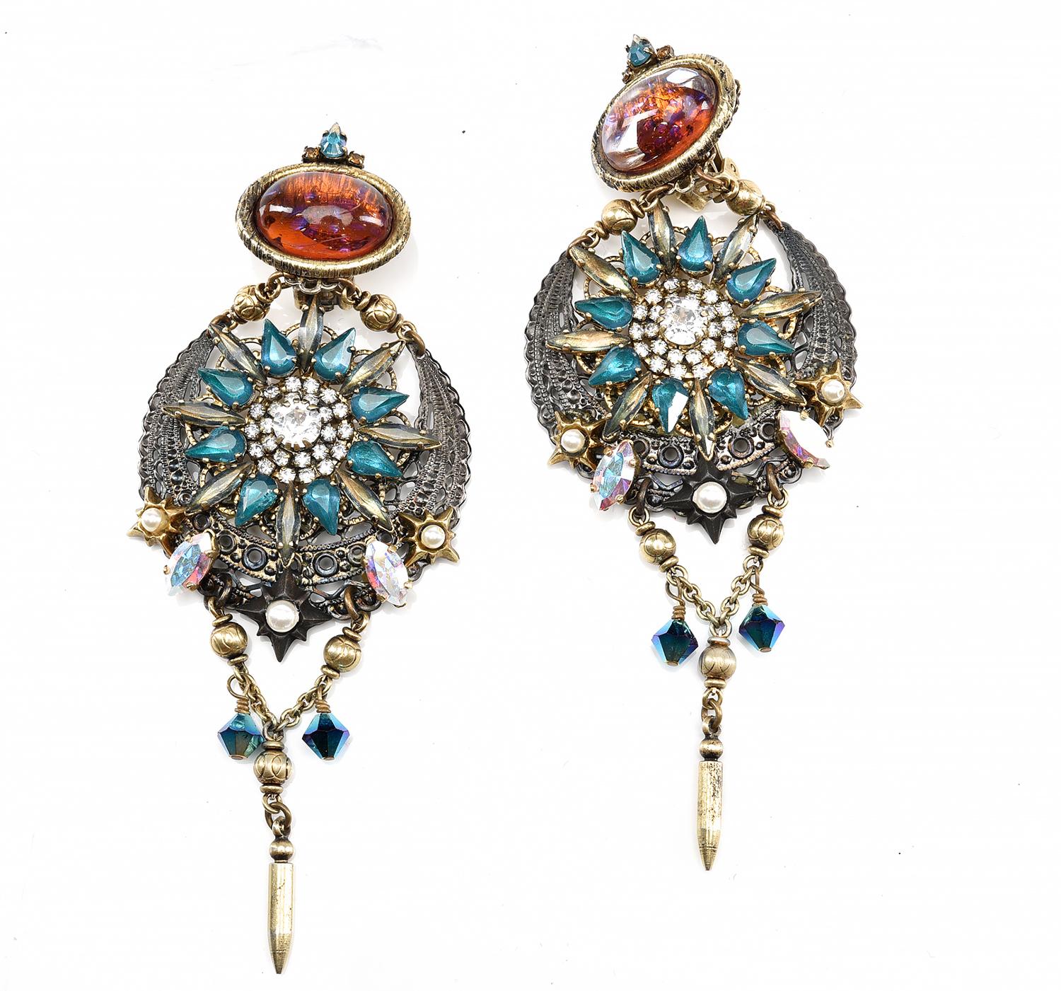 A PAIR OF ETHNIC STYLE CLIP EARRINGS IN COLOURED PASTE SET