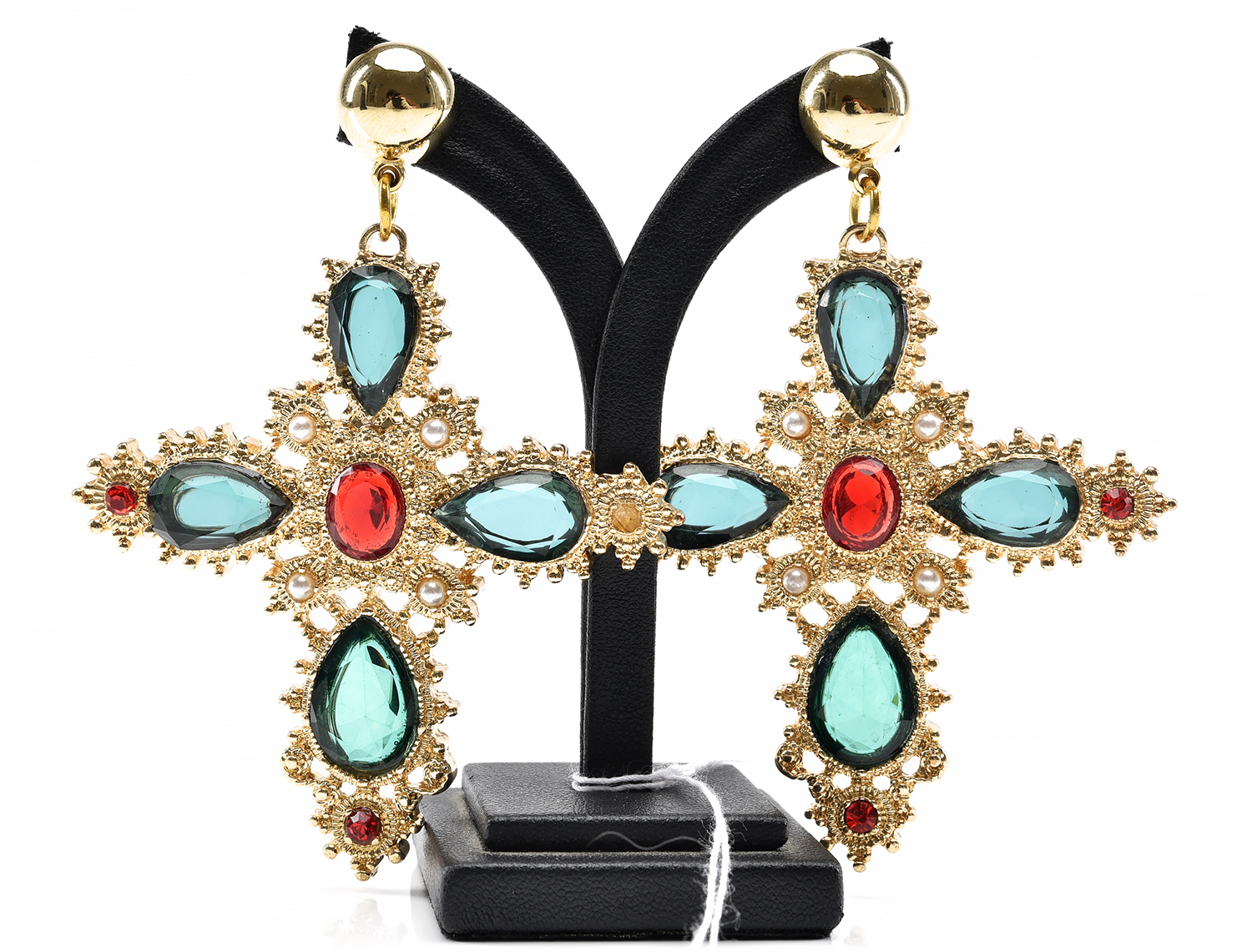A PAIR OF COSTUME EARRINGS WITH CROSS DESIGN, TOTAL LENGTH 85MM