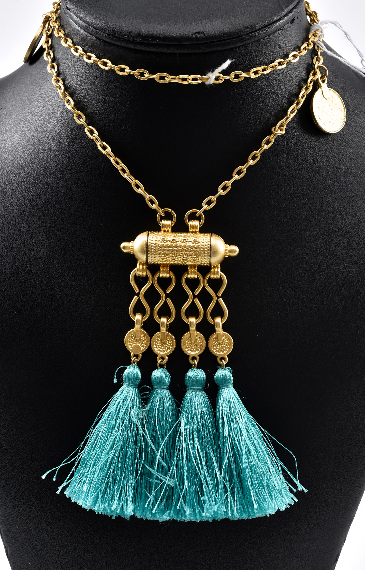 AN ETHNIC STYLE BLUE TASSLE DROP NECKLACE