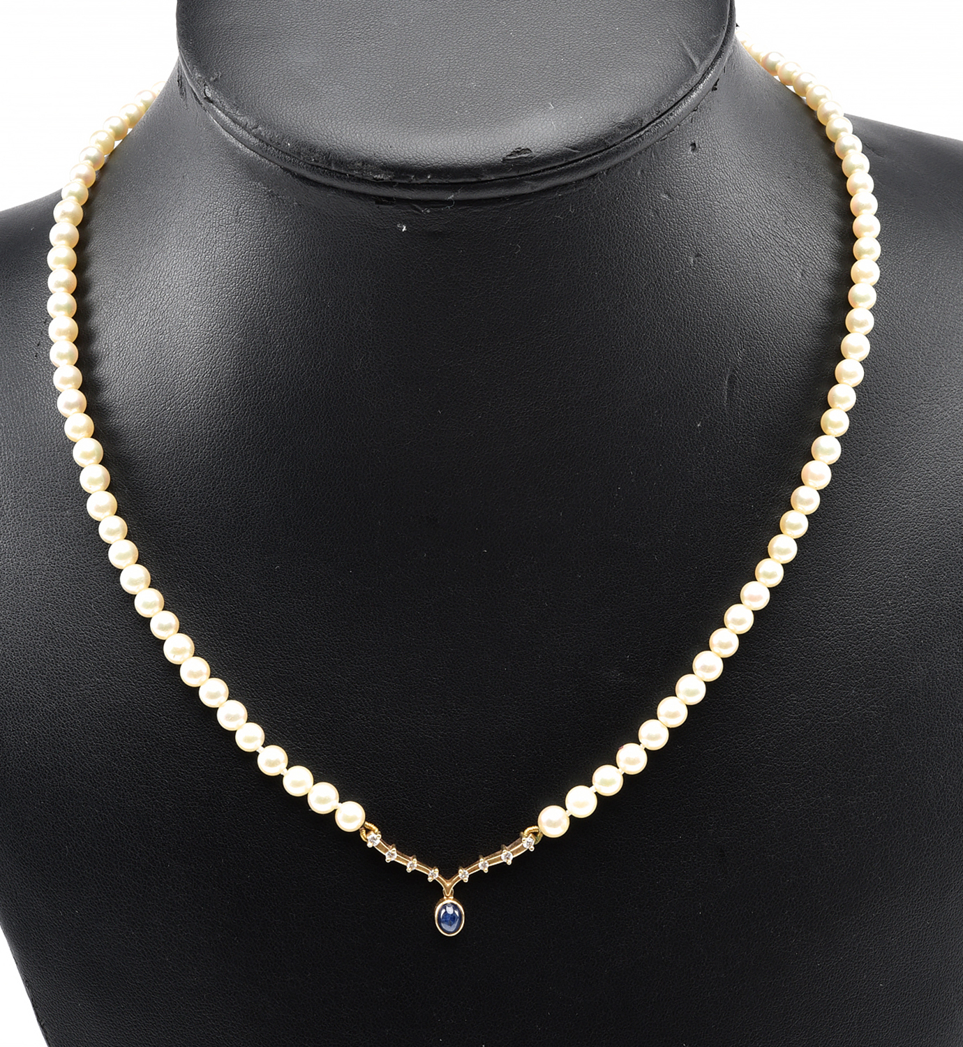 A STAR SAPPHIRE, DIAMOND AND CULTURED PEARL NECKLACE