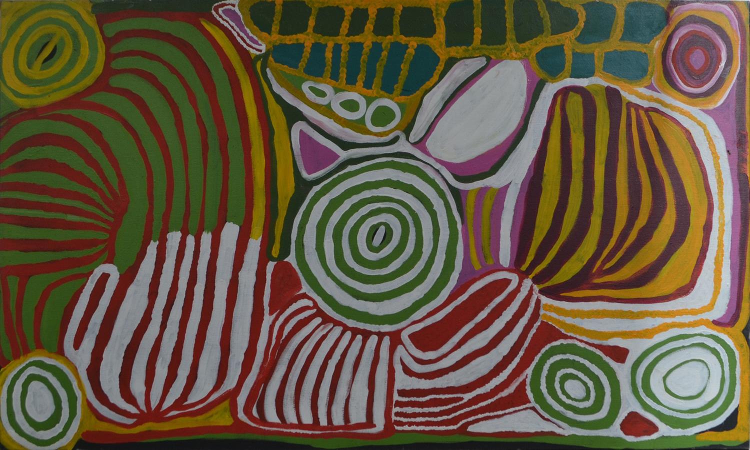ANMANARI BROWN, MINYMA KUTJARA 2007, ACRYLIC ON CANVAS, INSCRIBED VERSO WITH AGATHON GALLERIES CAT NO. AGAB0107070026, 84 X 138CM, CONDITION: EXCELLENT, WEAR TO EDGES