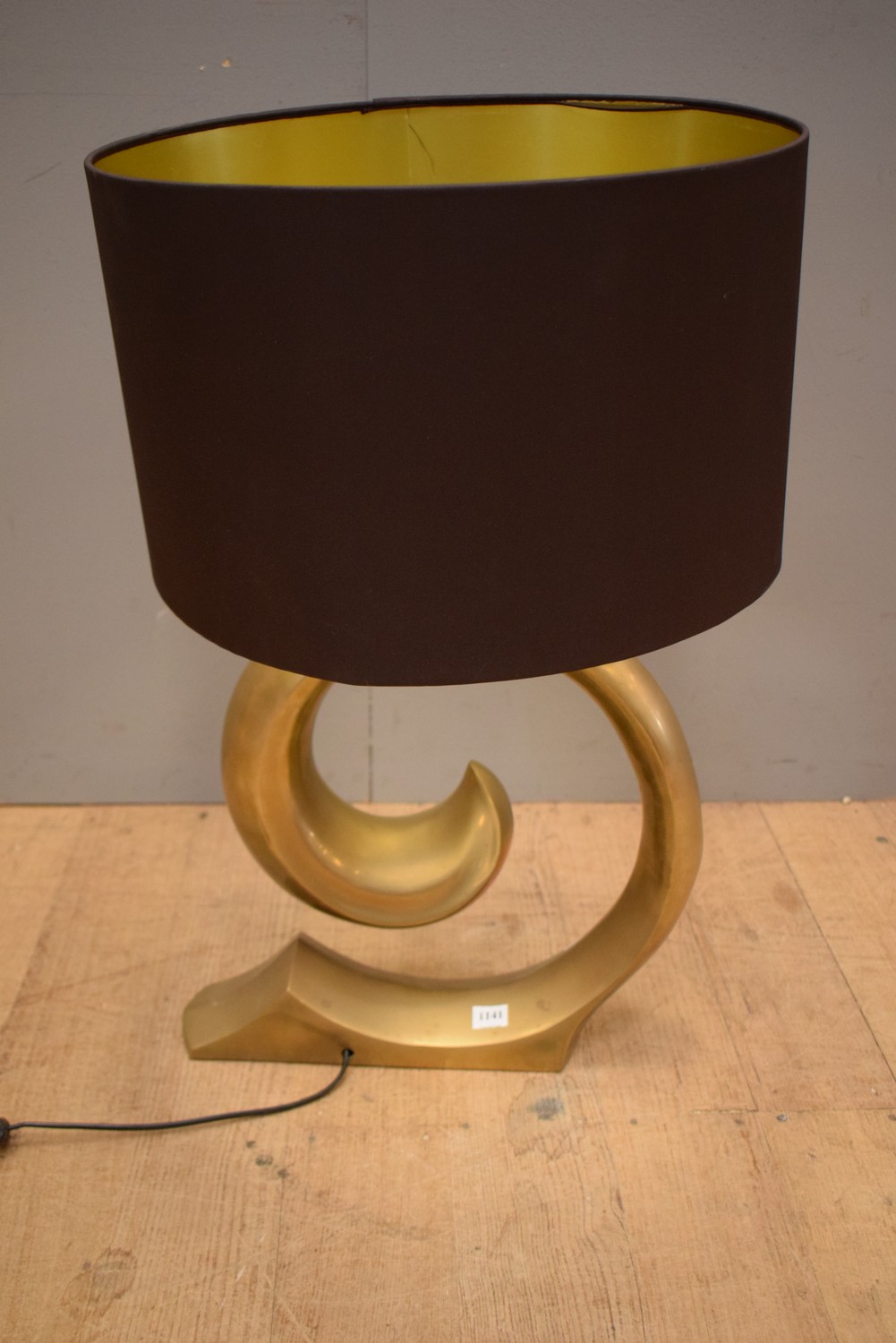 A DECORATIVE BRASS LAMP AND SHADE