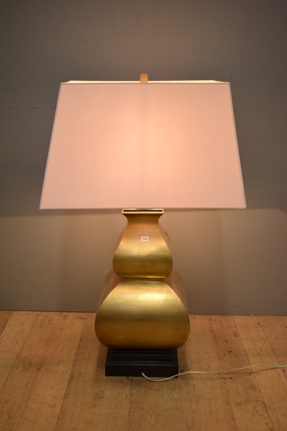 A LARGE DECORATIVE BRASS LAMP AND SHADE