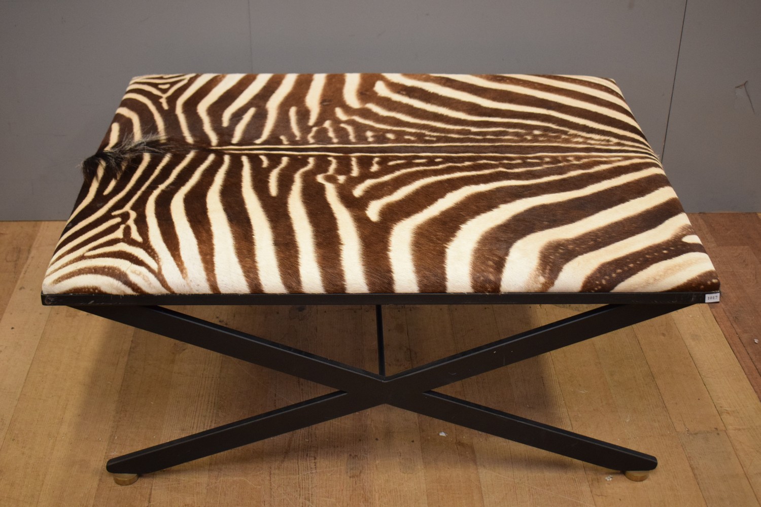 A ZEBRA SKIN STYLE (STAINED COW HIDE) COVERED GALLERY SEAT
