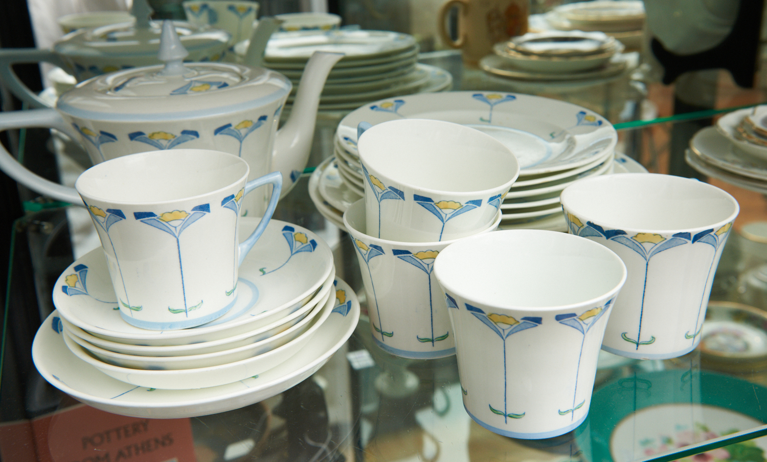 A HEATHCOTE PORCELAIN PART TEA SERVICE, (HAIRLINE TO THE COVER OF THE TEAPOT)