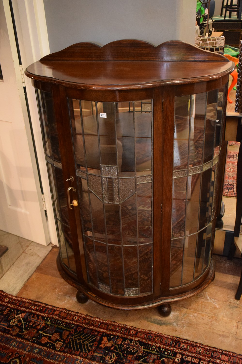 AN ART DECO DEMI LUNE DISPLAY CABINET (KEY IN OFFICE) (130H x 93W x 44D CM)