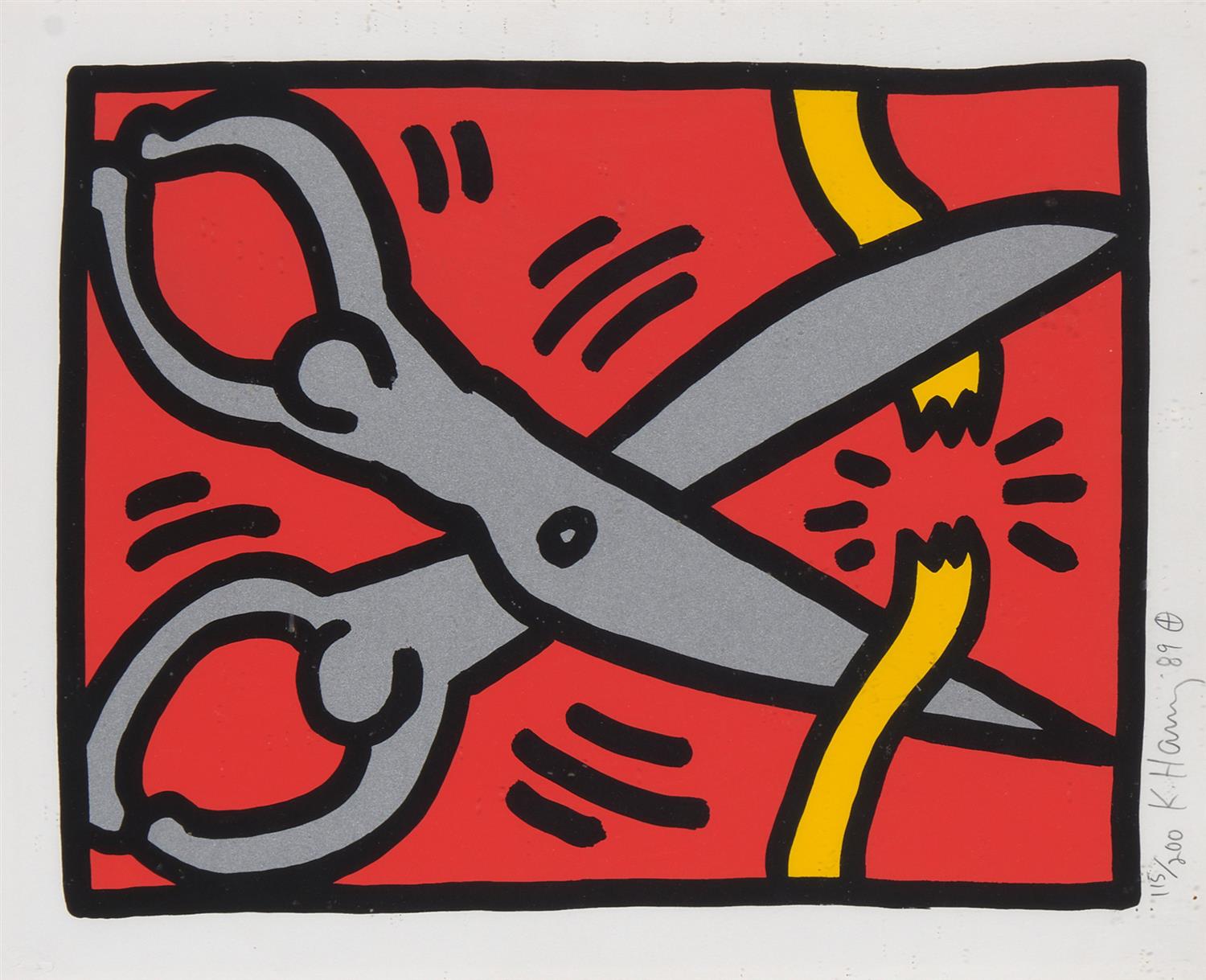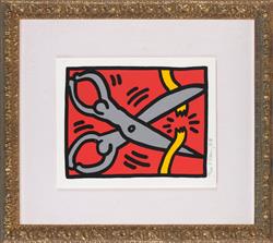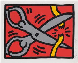 The Pop Shop opened in 1986 in the Soho, New York. Haring saw the Pop Shop as an extension of his work, a fun boutique where his art could be accessible to everyone. This series of work was created by Haring to coincide with the opening of the shops they use colors, and idols, such as the scissors, that appealed to the masses.