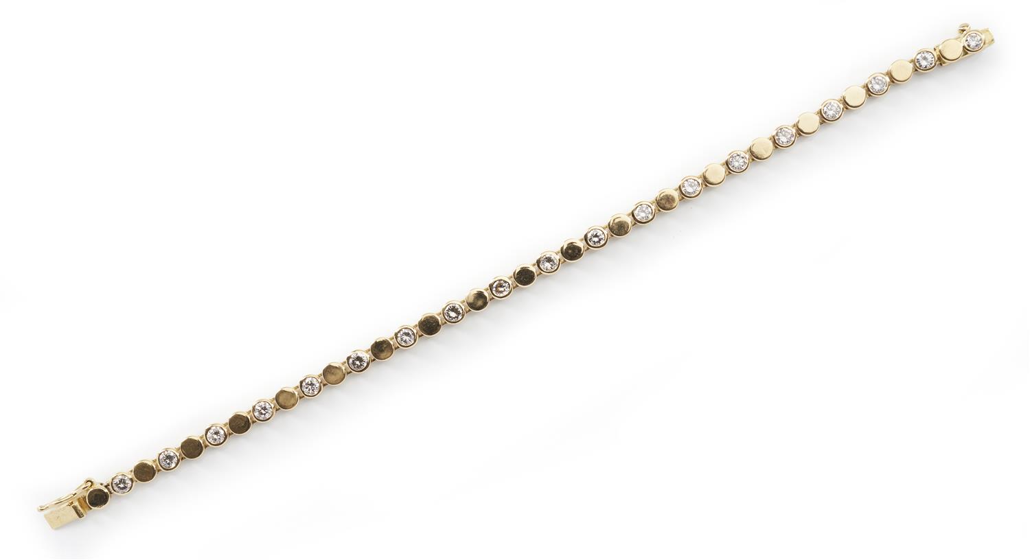 Bracelet presents in very good condition overall. All diamonds secure in their settings. Nineteen diamonds estimated total an estimated weight 2.45ct of good commercial quality. Tested as 18ct, no stamp. Total length 175mm.