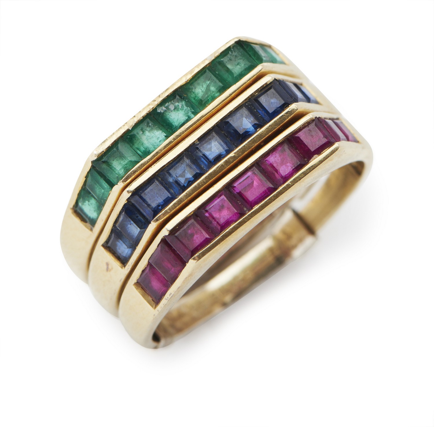 Rings present in good condition with all stones secure in their settings. Minor abrasions to some stones. Total weight 8 grams.