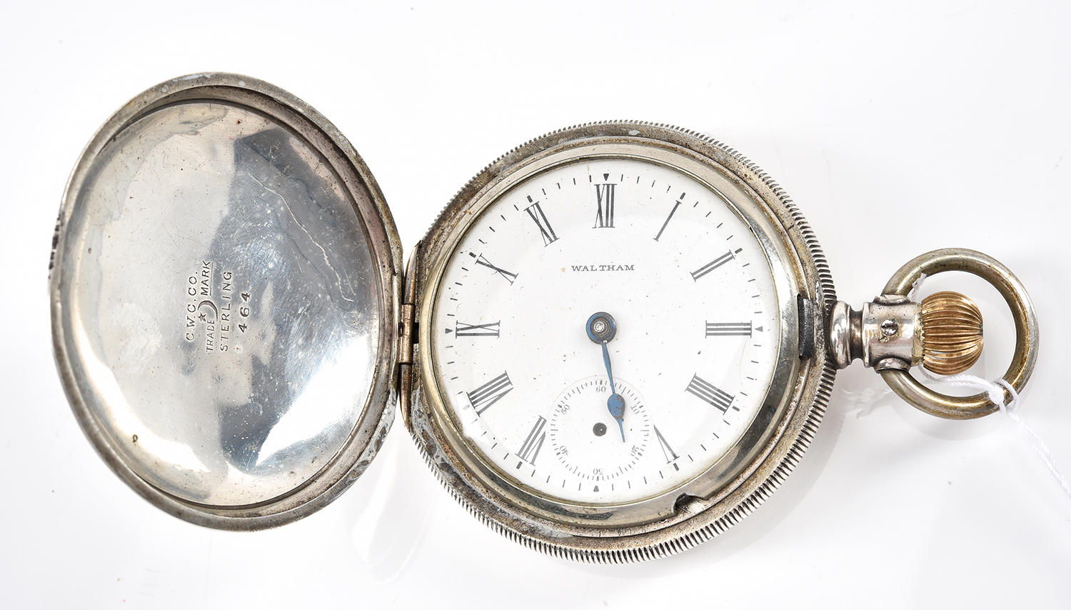 A GENTLEMAN POCKET WATCH IN STERLING SILVER BY WALTHAM, AF