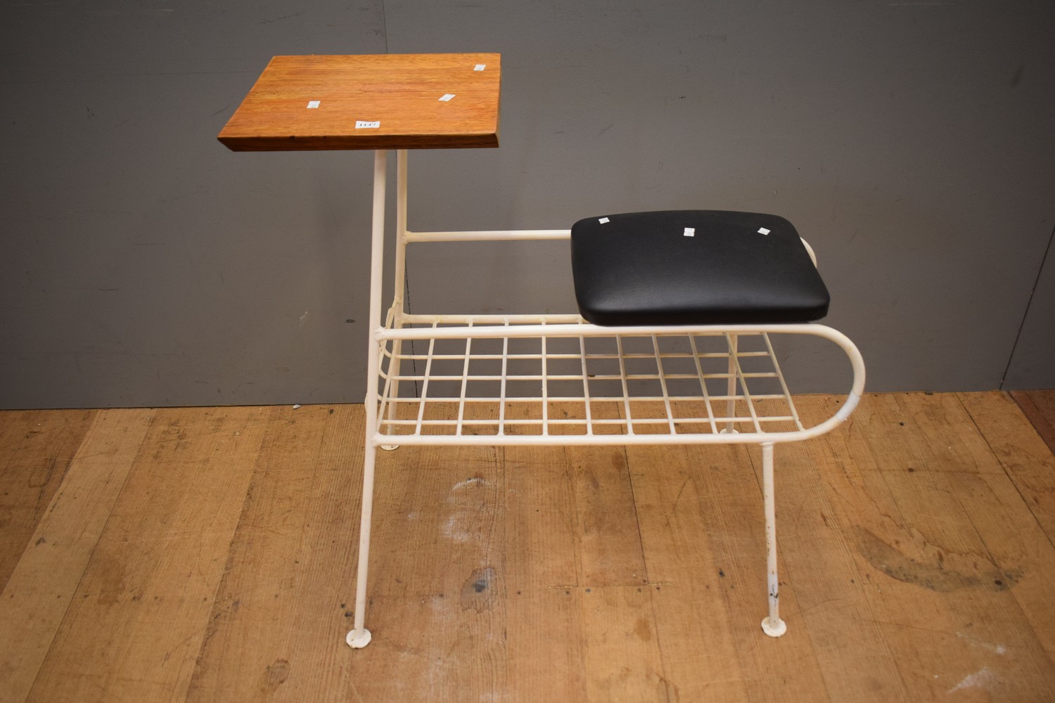 A MID CENTURY WROUGHT IRON TELEPHONE TABLE