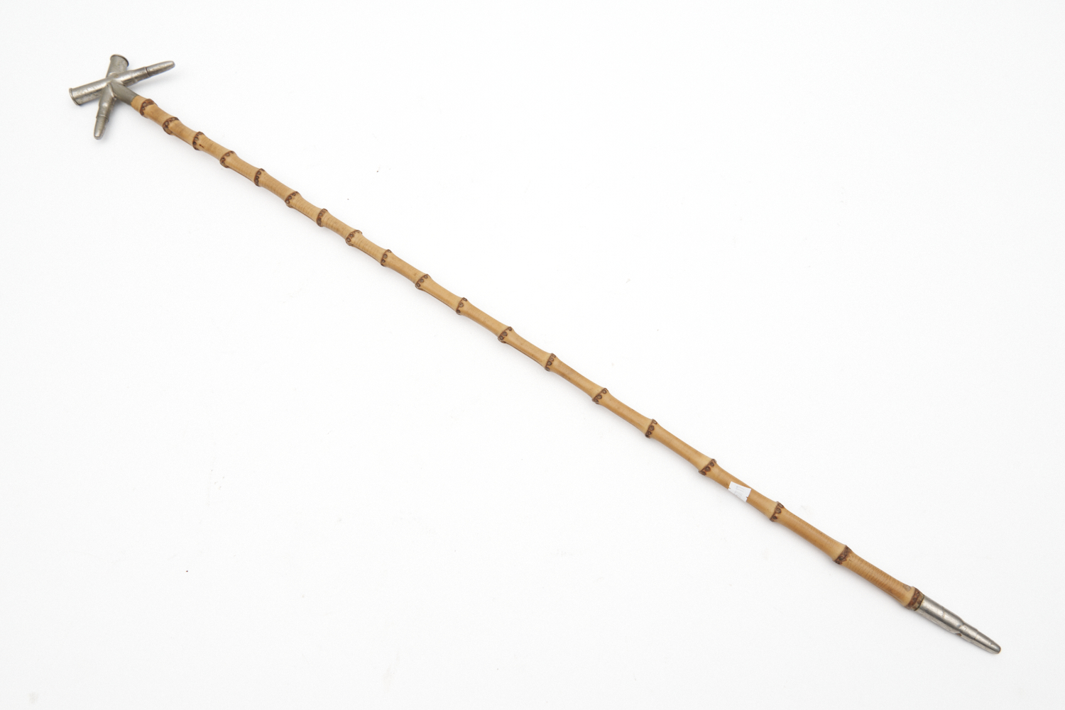 A TRENCH ART SHELL CASING CANE, 70CM LONG