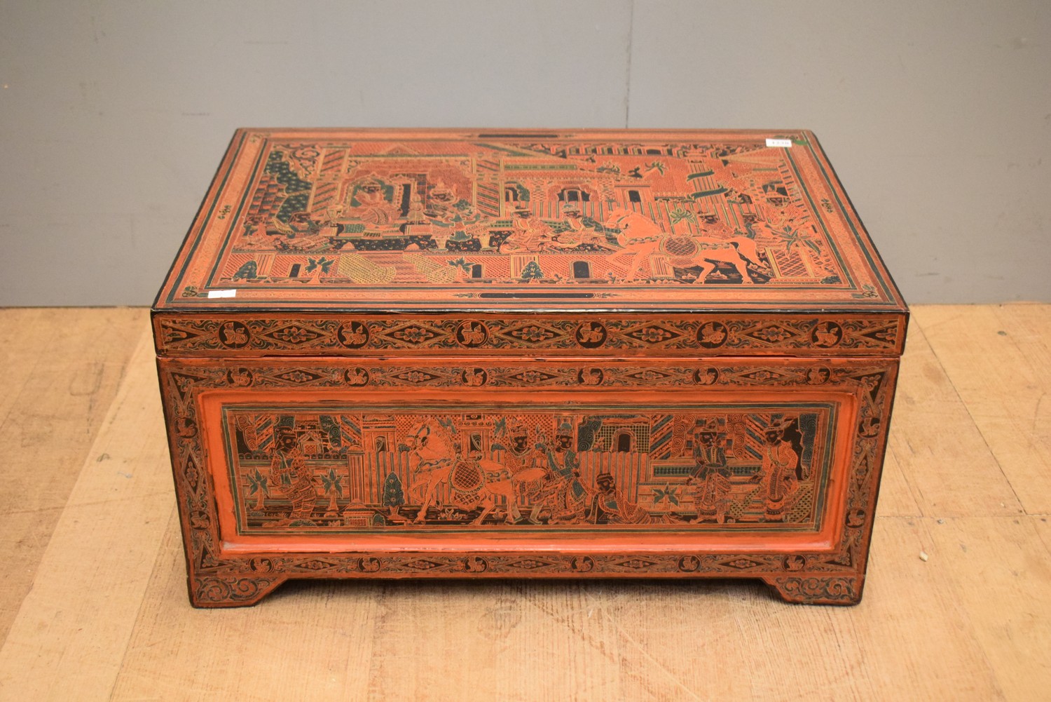 A BURMESE LACQUER BOX (31H X 61W X 41D)