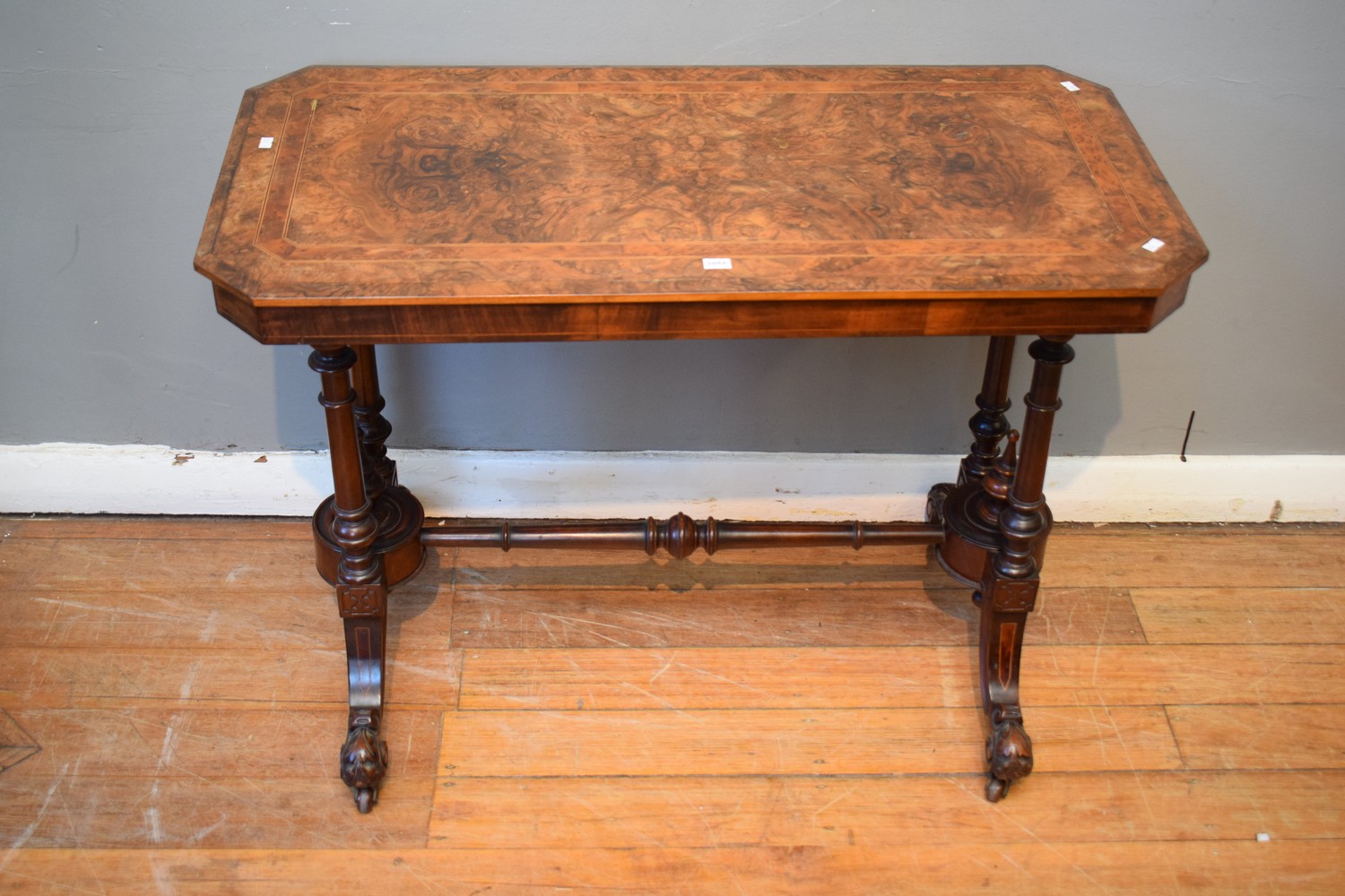 A VICTORIAN BURL WALNUT VENEERED SIDE TABLE