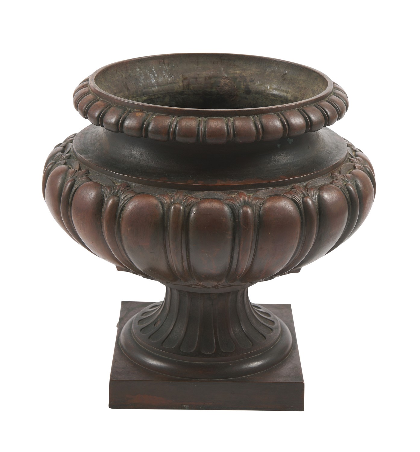 A GOOD QUALITY CLASSICAL INSPIRED BRONZE URN JARDINIERE