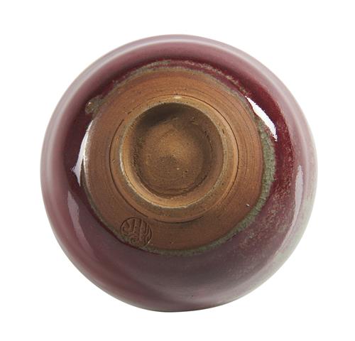 Covered in an intense copper red glaze, with mark to the base reading 'Koyo'. Together with tomobako (original inscribed wooden box).