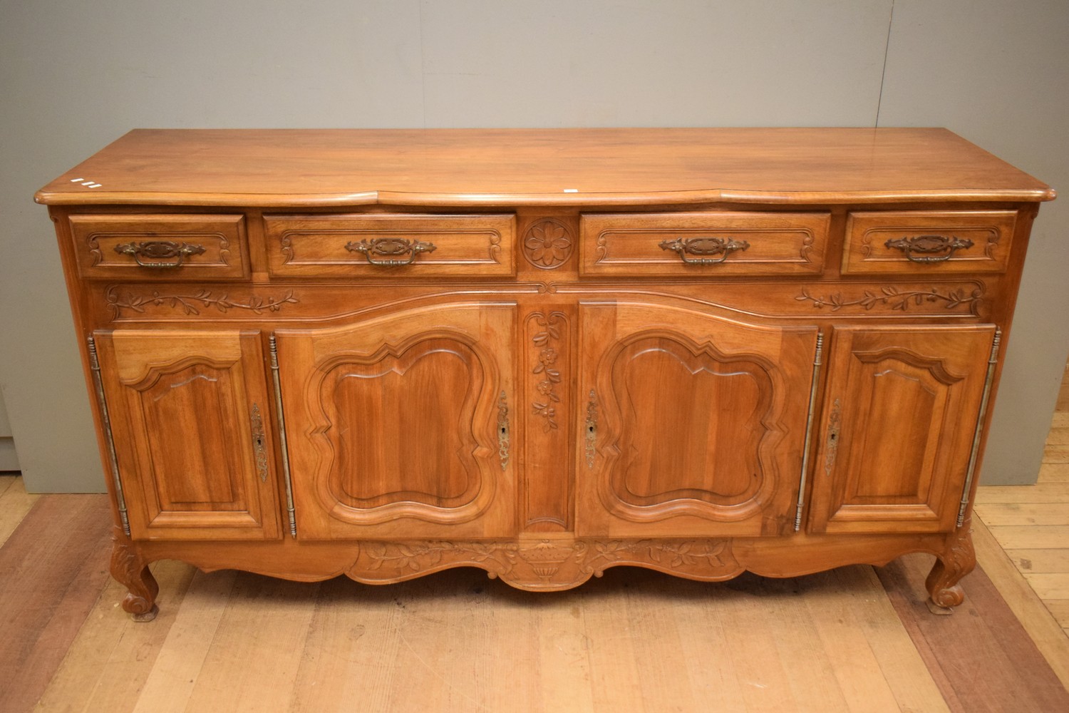 A LARGE FRENCH PROVINCIAL FOUR DOOR SIDEBOARD (105H x 201W x 58D CM)