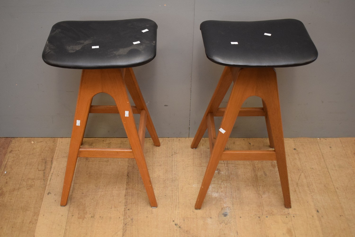 A PAIR OF TH BROWN STOOLS