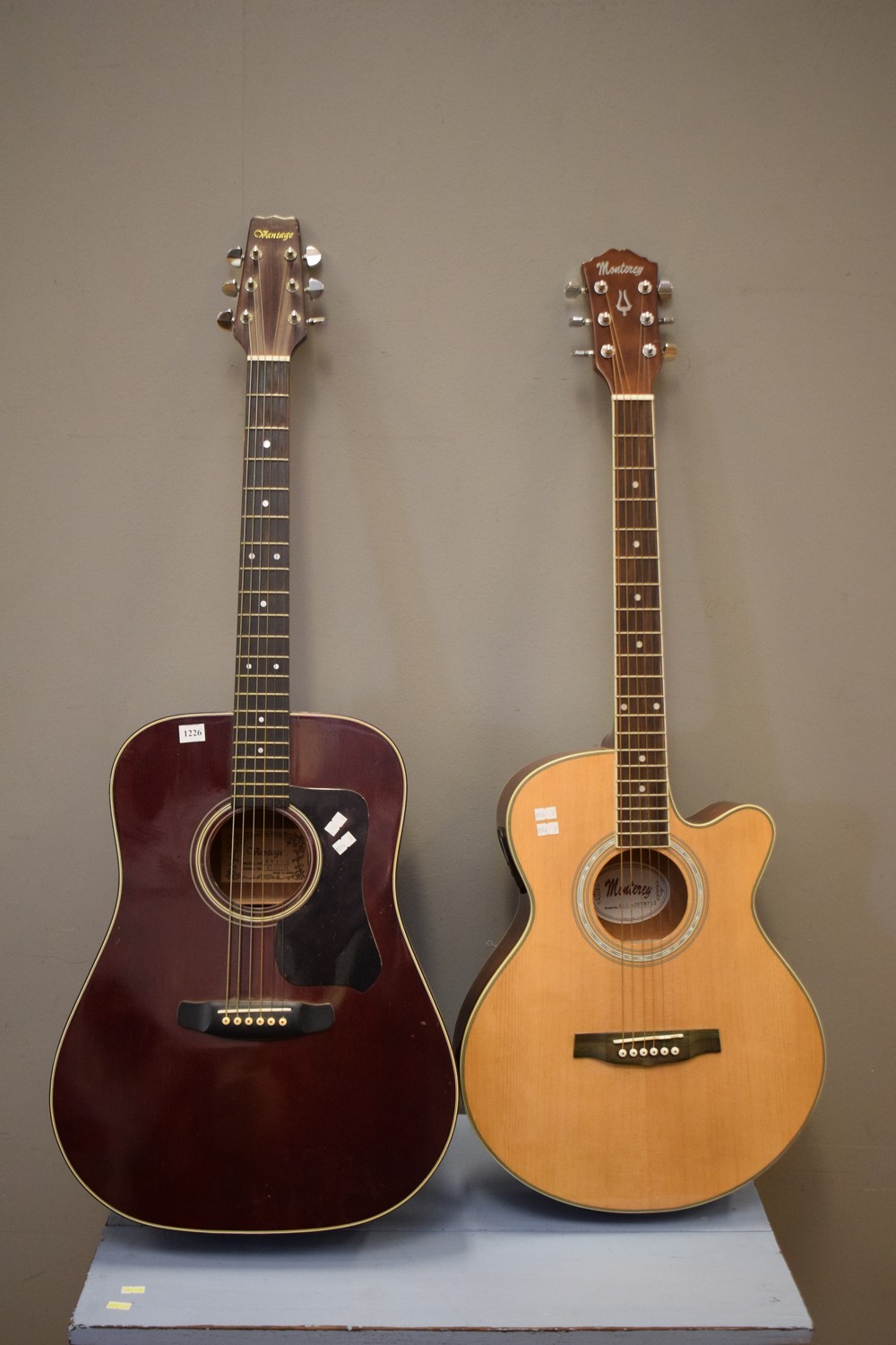 TWO ACOUSTIC GUITARS, ONE BEING AN ELECTRIC