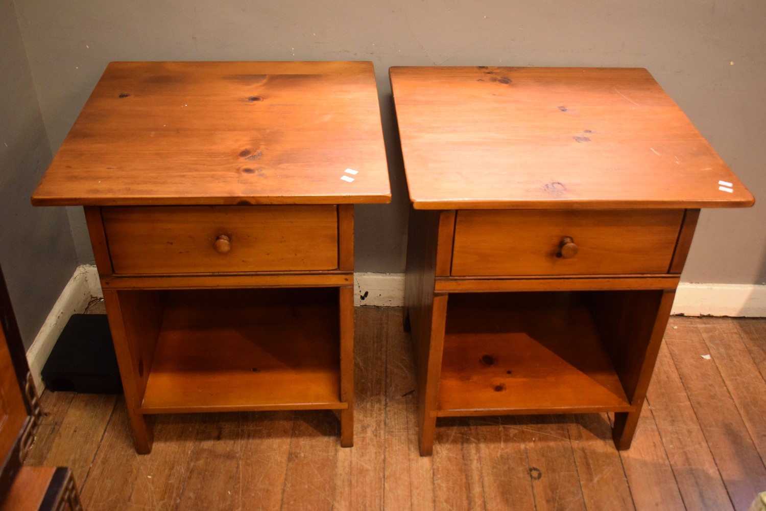 A PAIR OF SINGLE DRAWER BEDSIDE TABLES (72H X 61W X 62D)