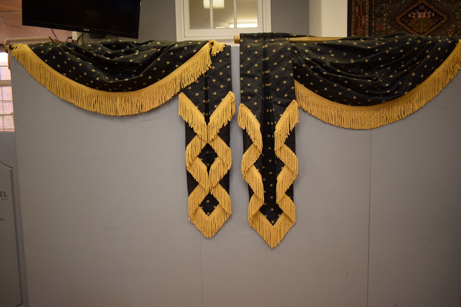 A LARGE STAR COVERED CURTAIN ( 160W CM EACH ROD)