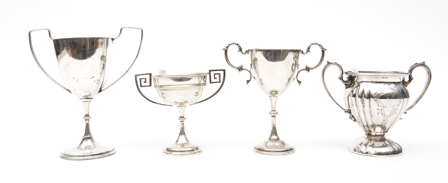 A GROUP OF FOUR EPNS TROPHIES TALLEST 14CM