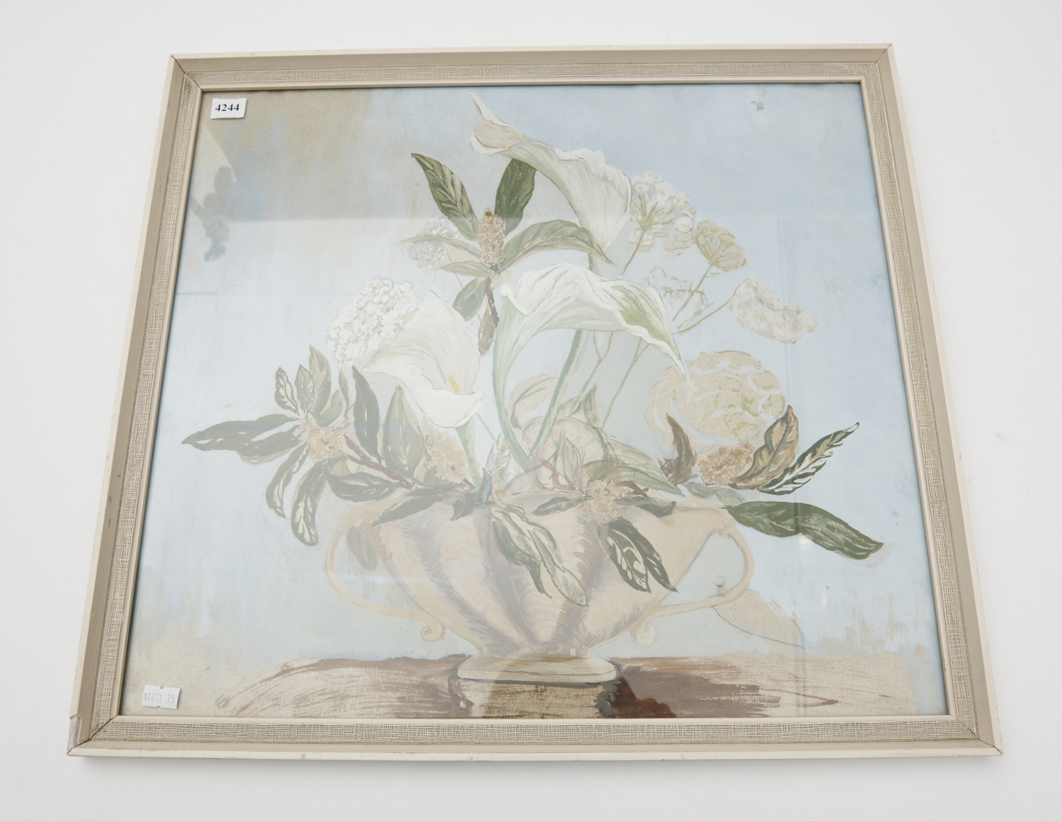 SKI LODGE, OIL ON BOARD AND A FLORAL STILL LIFE WATERCOLOUR, THE LARGEST 39.5 CM X 51.5 CM