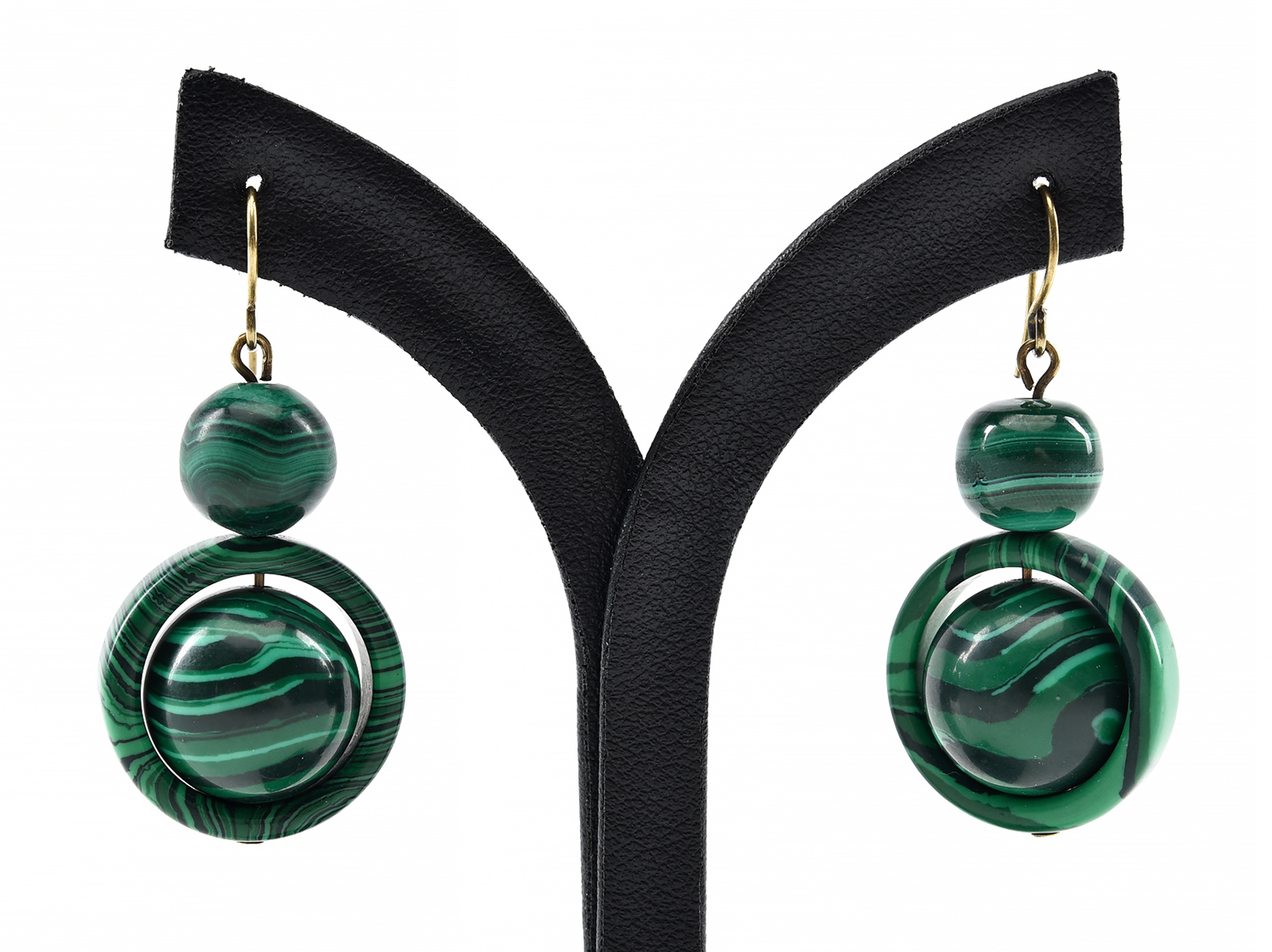 A PAIR OF VICTORIAN SPHERICAL MALACHITE DROP EARRINGS