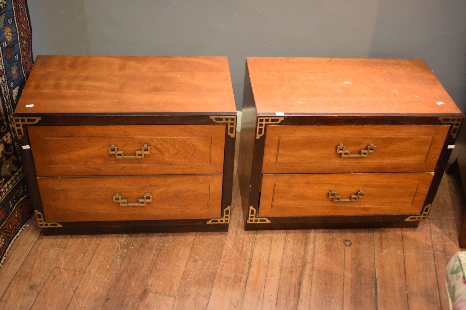 A PAIR OF CHINESE BEDSIDE CABINETS (A/F) (54H X 67W X 39D)