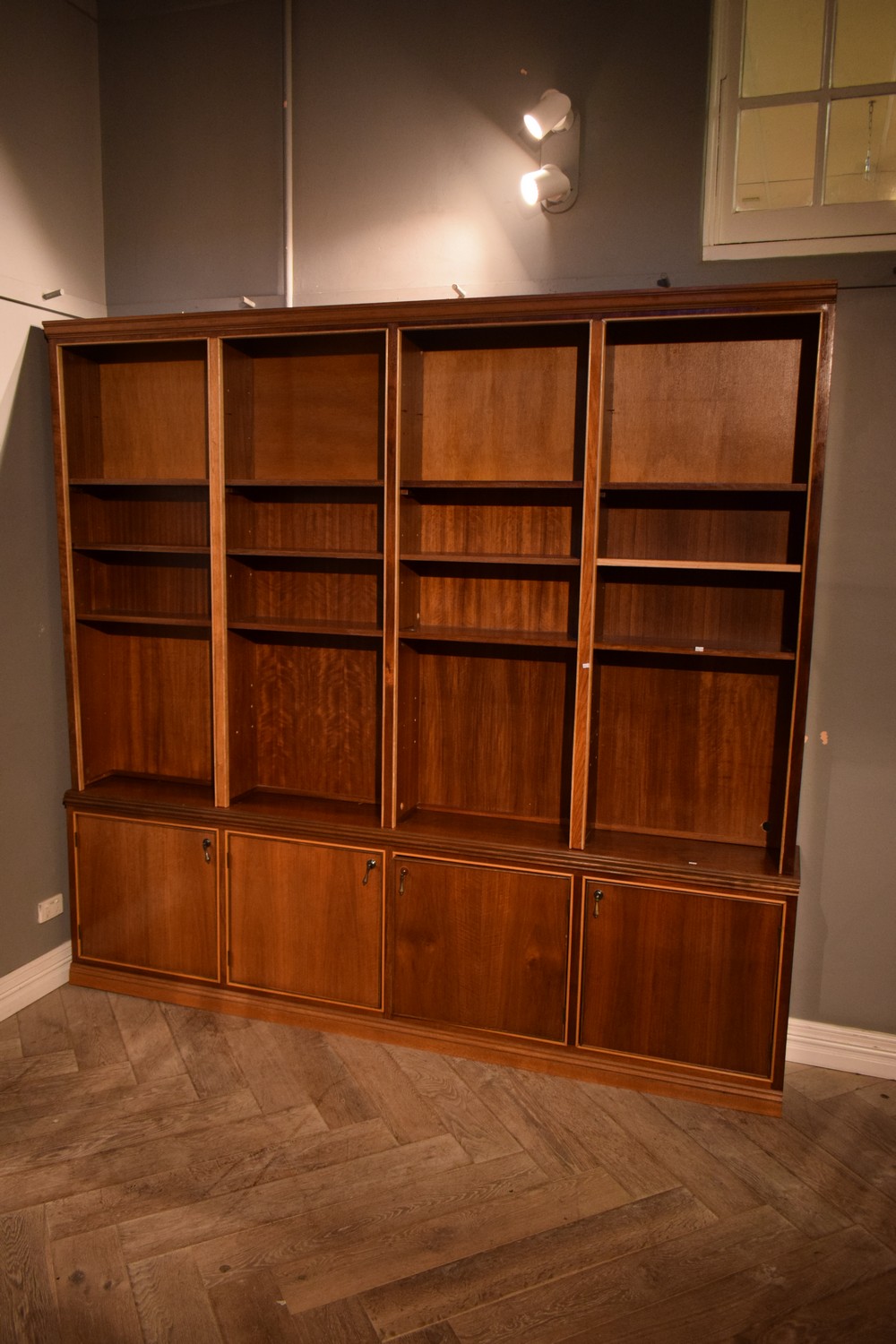 A LARGE FOUR DOOR BOOKCASE/SIDEBOARD (A/F) (232H X 249W X 34D) (PLEASE NOTE THIS ITEM MUST BE REMOVED BY CLIENTS OR CARRIERS AT THE CUSTOMERS EXPENSE)