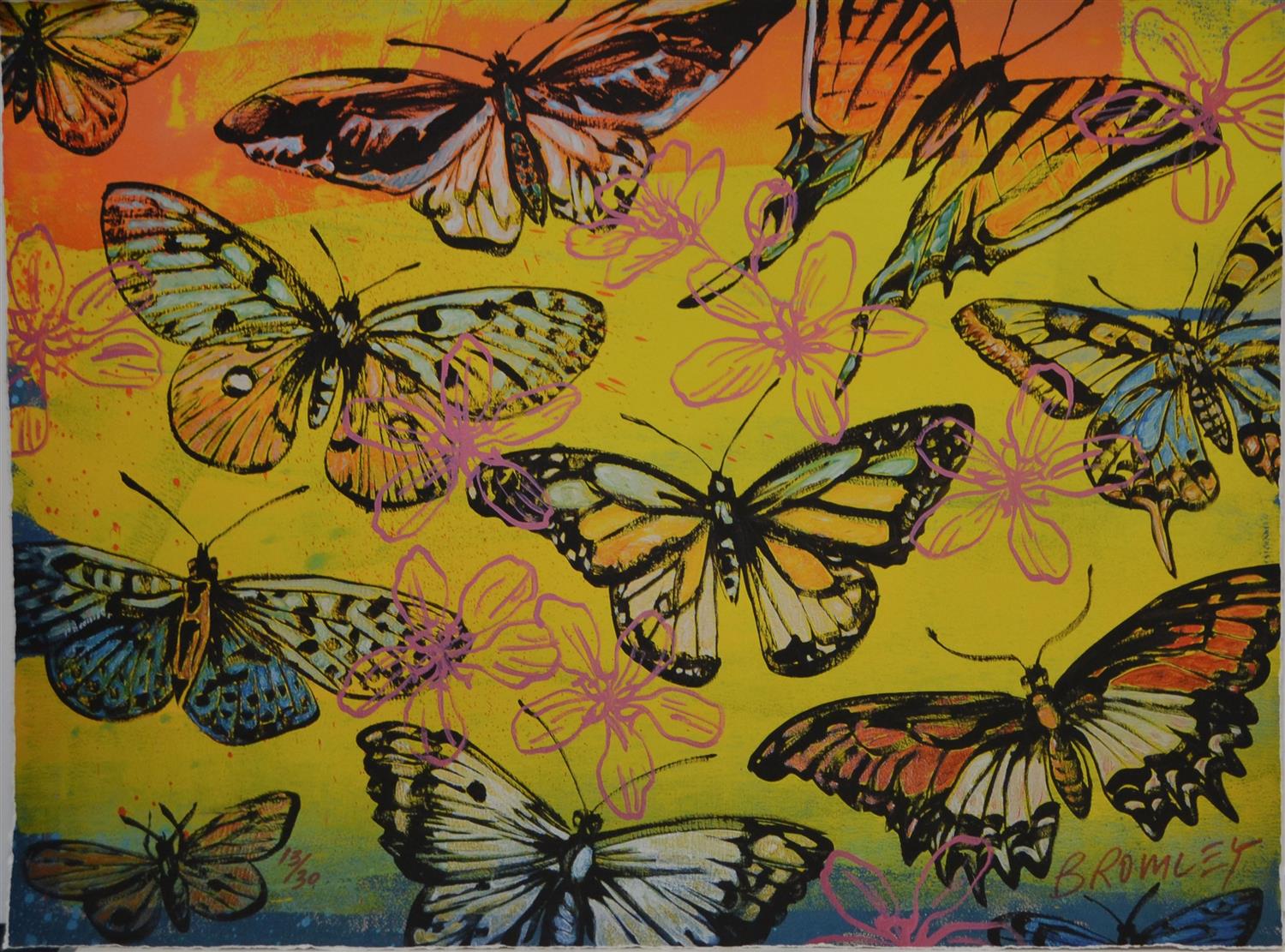 DAVID BROMLEY, SUMMER BUTTERFLIES, GICLEE PRINT 13/30, 55 X 75CM (IMAGE SIZE), UNFRAMED, CONDITION: VERY GOOD