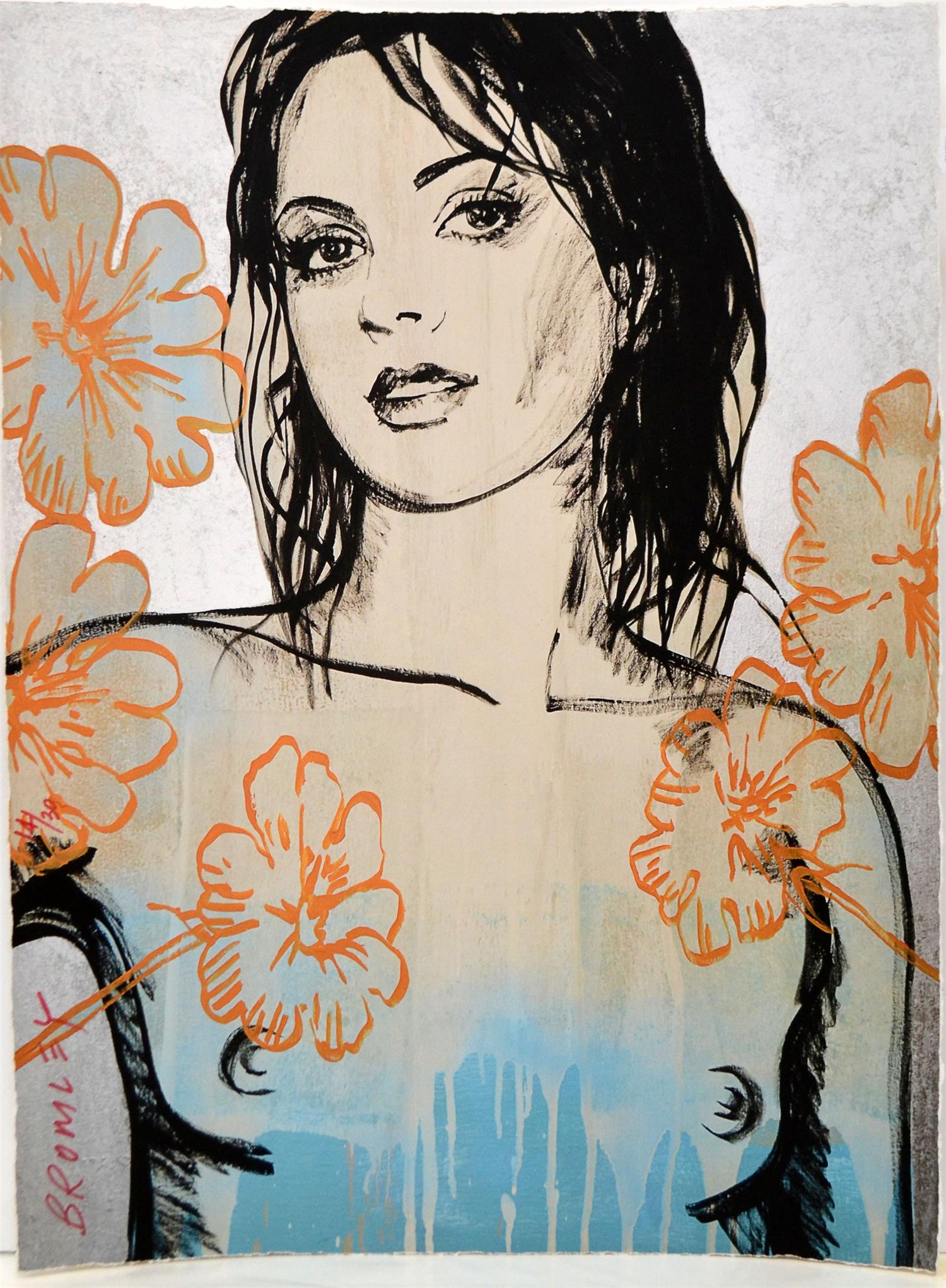 DAVID BROMLEY, BELINDA WITH FLOWERS, GICLEE PRINT 14/30, 75 X 55CM (IMAGE SIZE), UNFRAMED, CONDITION: VERY GOOD