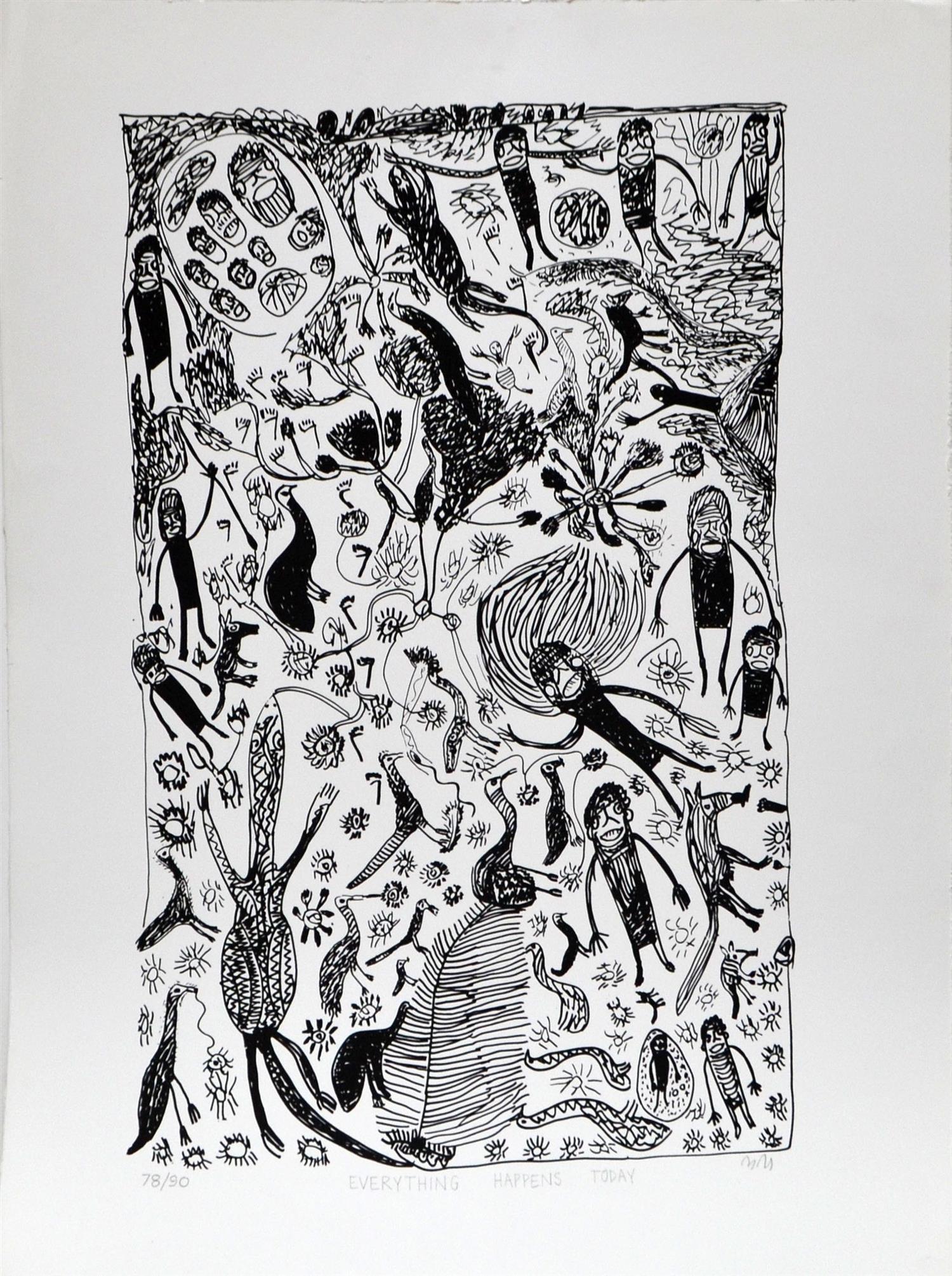 MARY MCLEAN, EVERYTHING HAPPENS TODAY, SCREENPRINT 78/90, 62 X 38CM (IMAGE SIZE), UNFRAMED, CONDITION: VERY GOOD